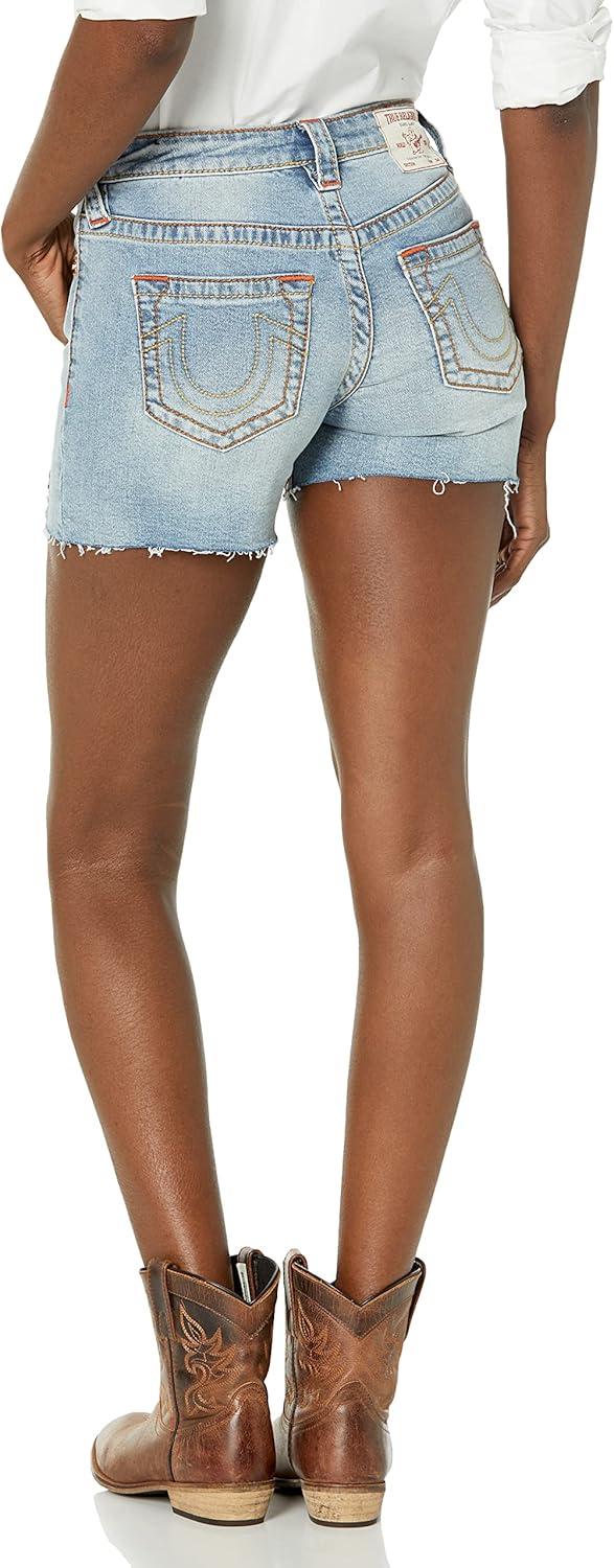 True Religion Women’s Maisie High Rise Single Needle Raw Hem Short(Medium Wash)