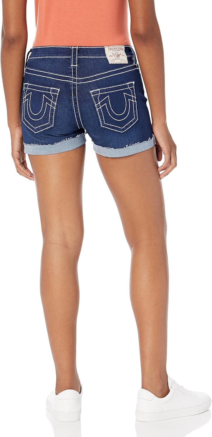True Religion Women’s Jennie Curvy Midrise Rolled Big T Short(Med Wash Destroy)