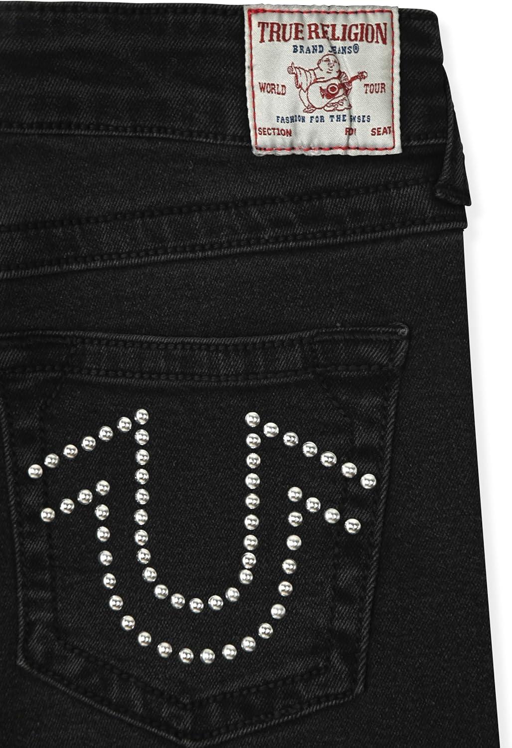 True Religion Girls Fashion Jeans Premium Designer Denim Pants for Kids (Sizes 7-14)(Black Studs)