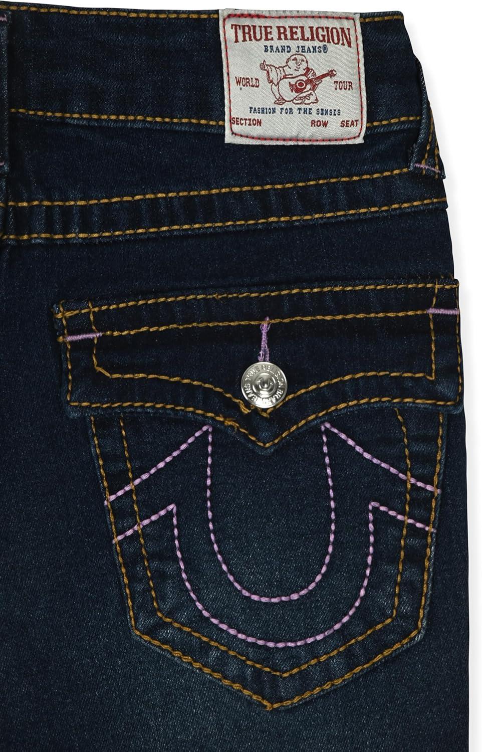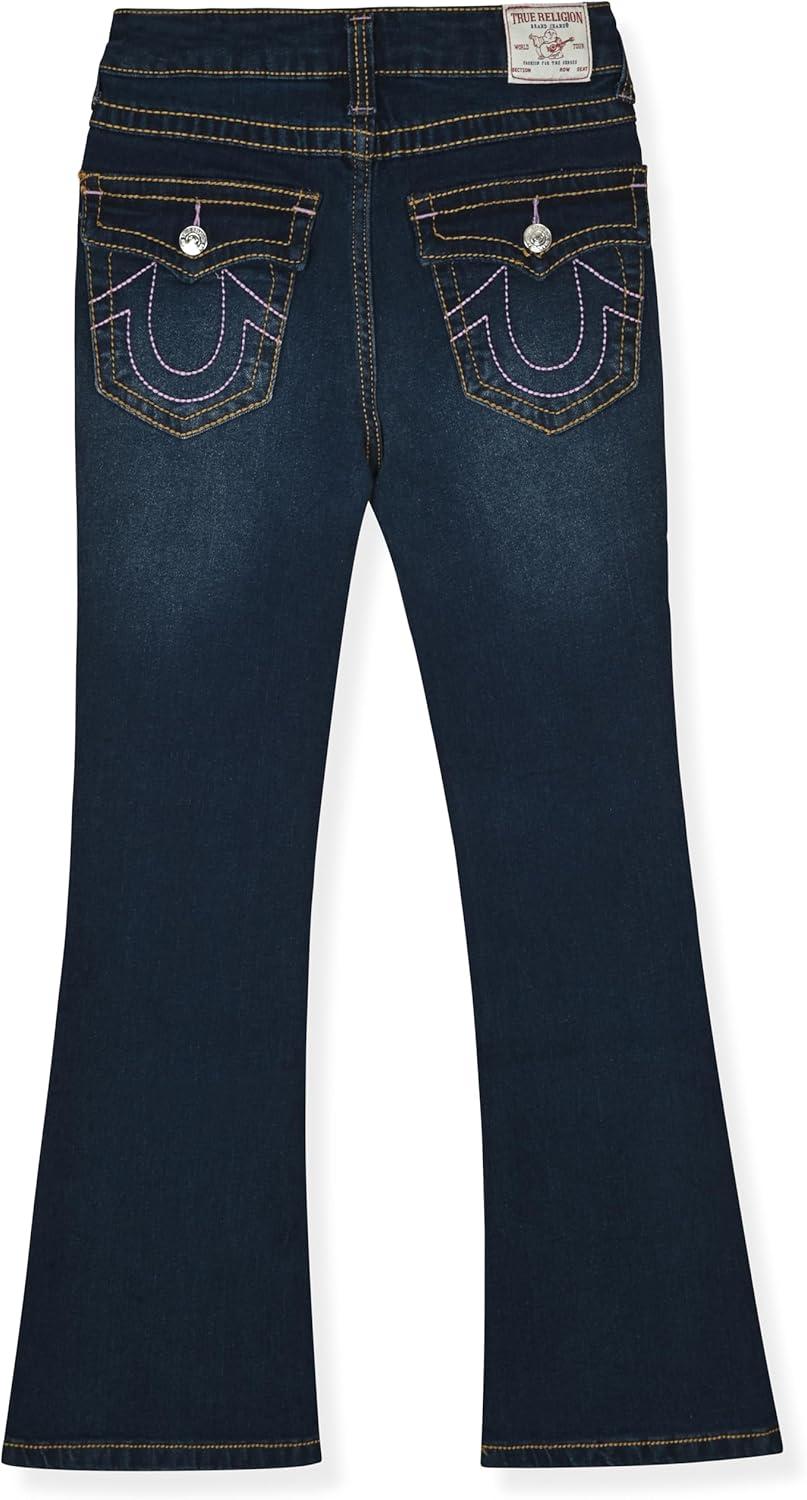 True Religion Girls Fashion Jeans Premium Designer Denim Pants for Kids (Sizes 7-14)(Dark Blue Flare)