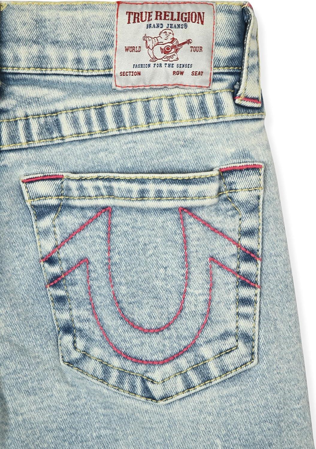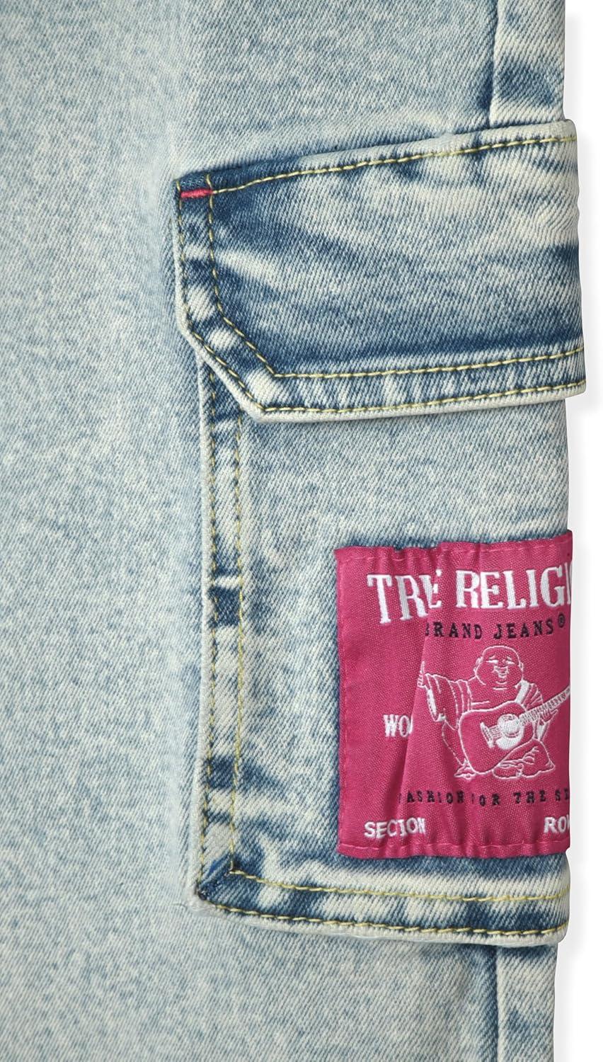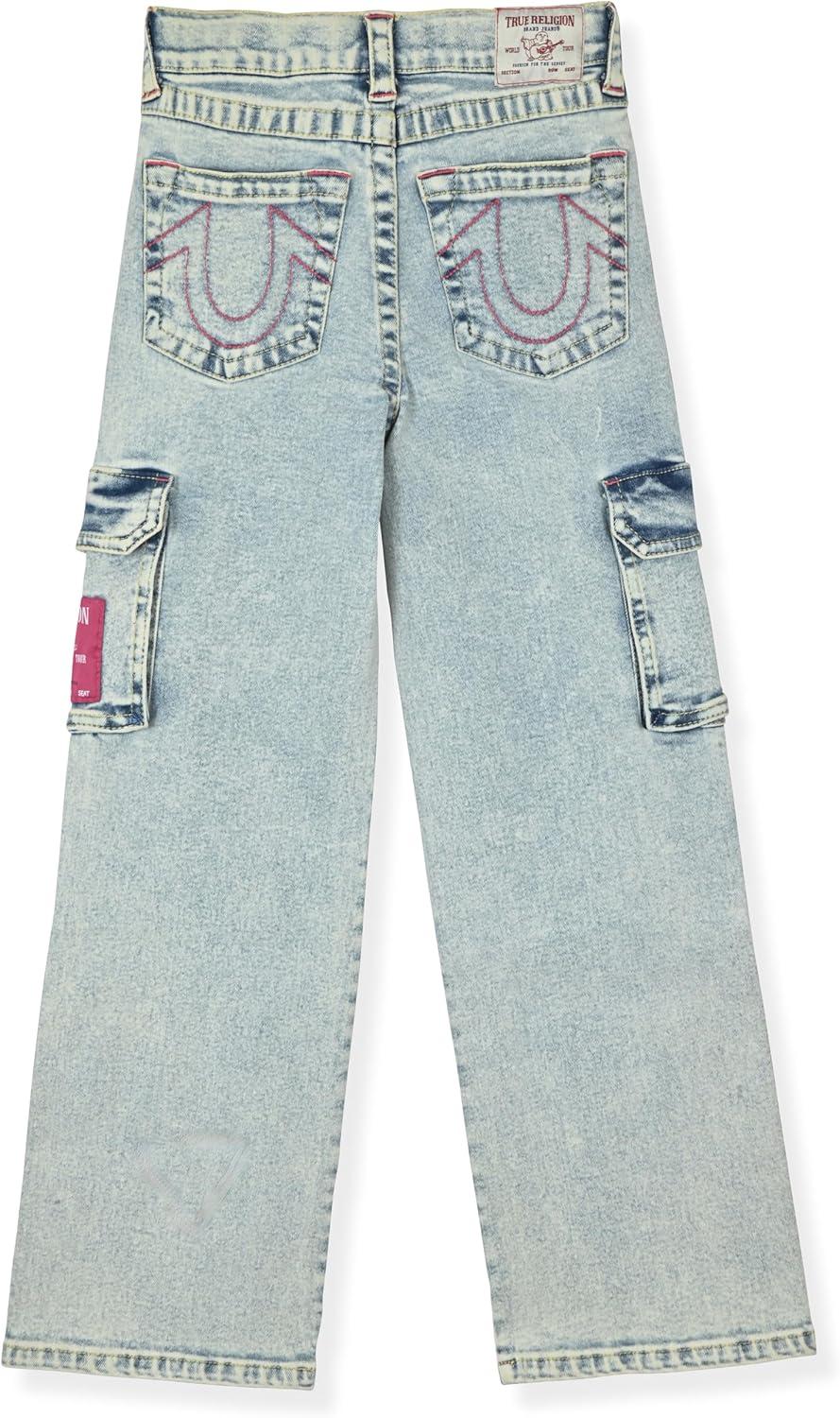 True Religion Girls Fashion Jeans Premium Designer Denim Pants for Kids (Sizes 7-14)(Light Blue Cargo)