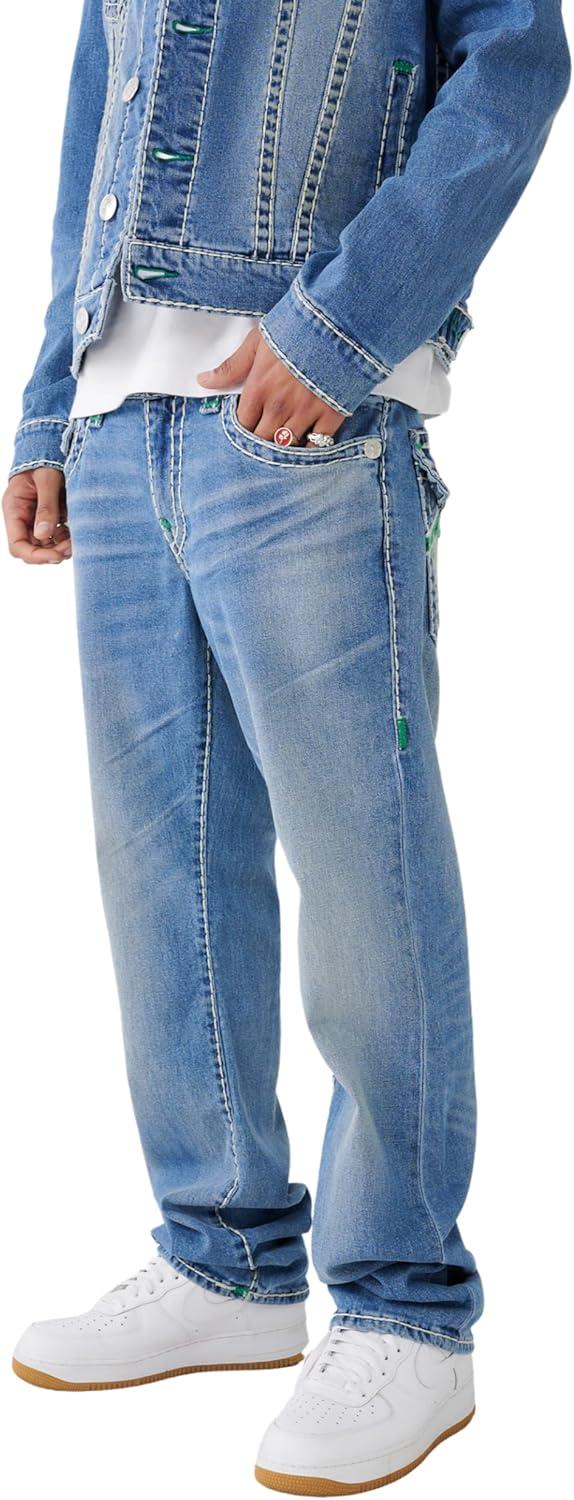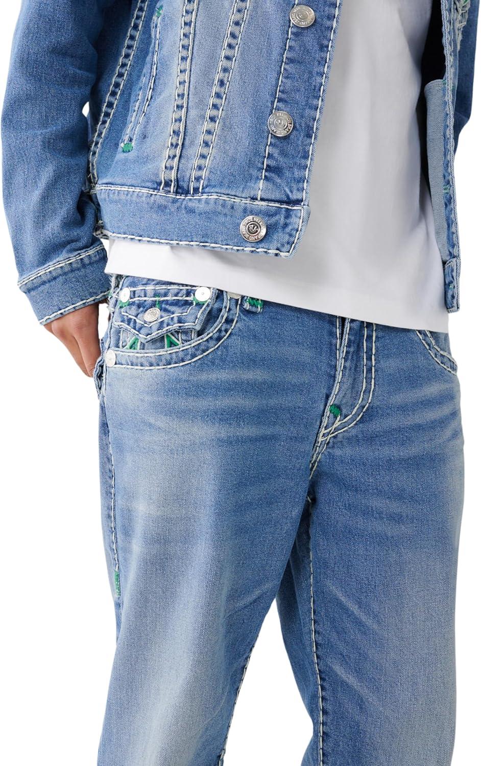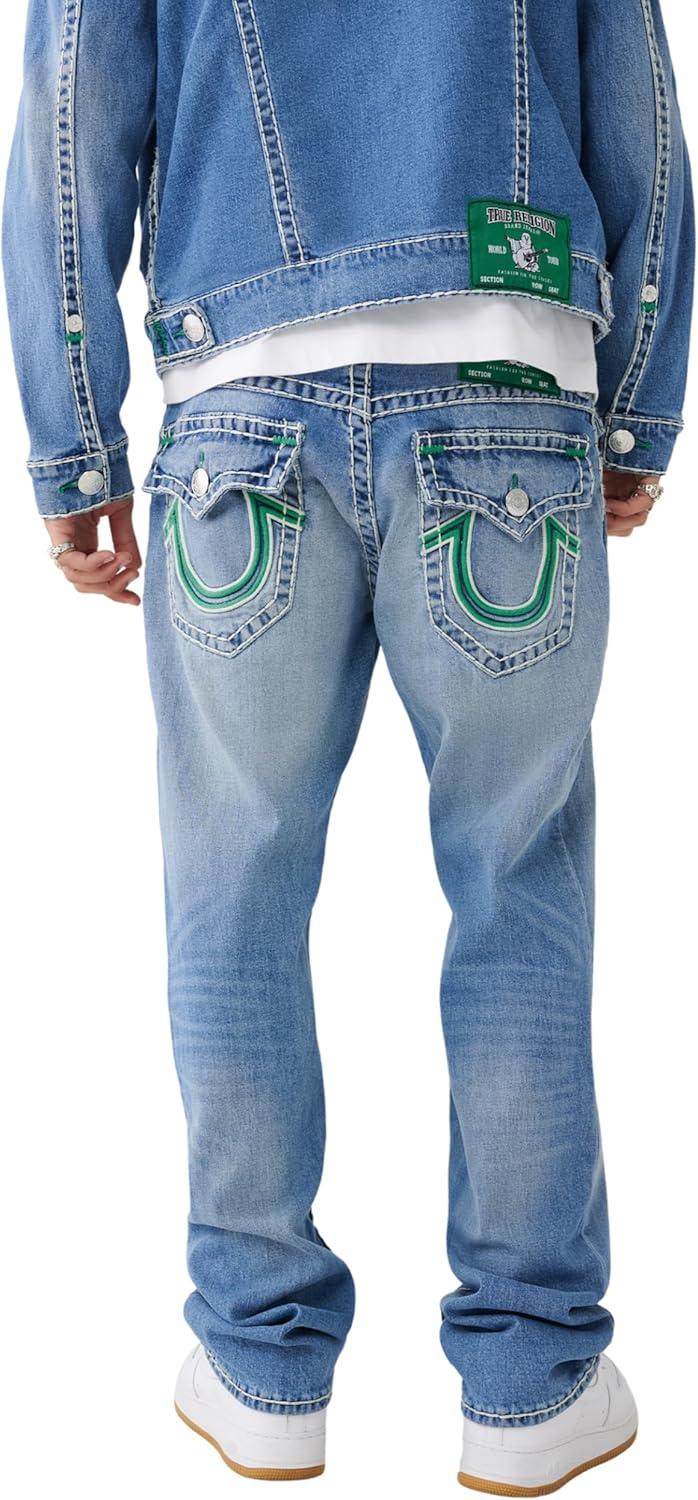 True Religion Mens Ricky Double Raised Super T Flap Straight Jean(Beach Fire Medium)