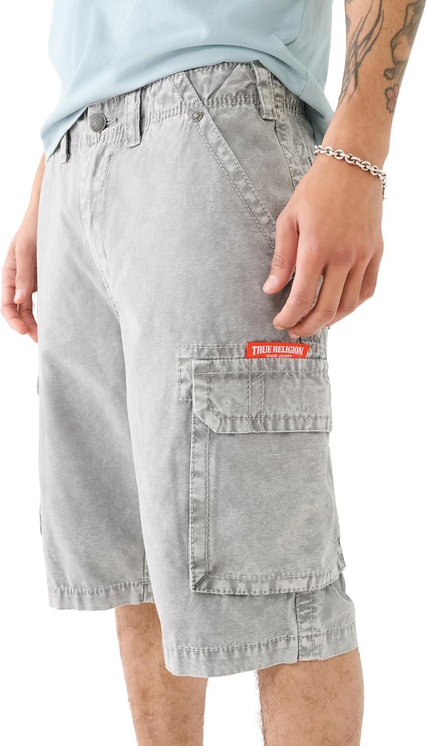 True Religion Mens Big T Classic Cargo Shorts(Granite Grey)