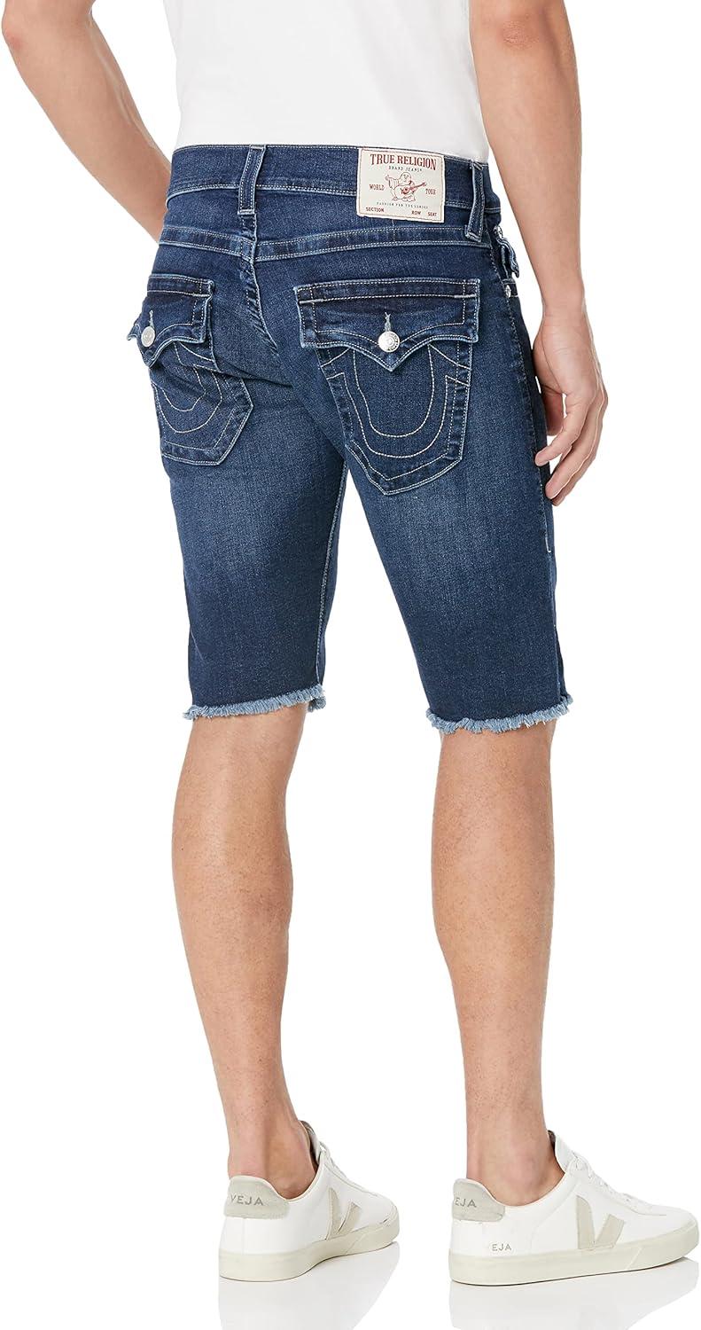 True Religion Men’s Ricky Fray Hem Shorts with Flap(Dark Wash)