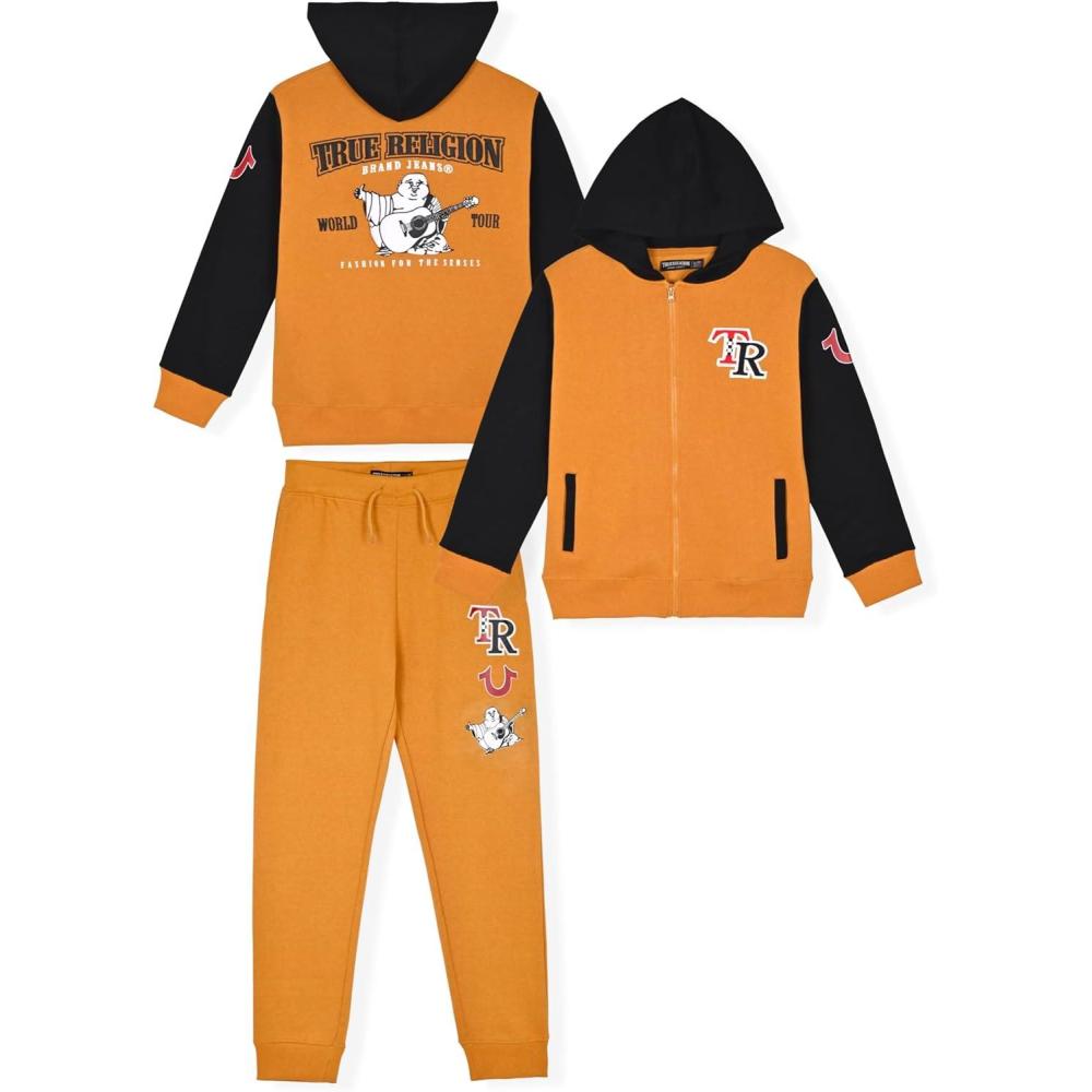True Religion Boys Sweatshirts and Sweatpants for Kids 2 Piece Clothing Set Fleece Hoodie and Jogger Pants(Yellow Varsity)