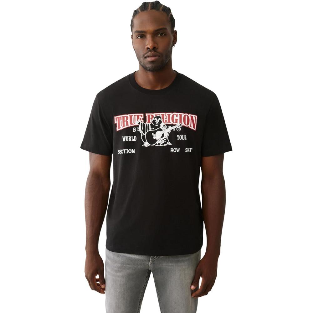 True Religion Buddha Arch Logo T-Shirt for Men – 100% Cotton Graphic Tee with Front & Back Print, Short Sleeve(Jet Black)