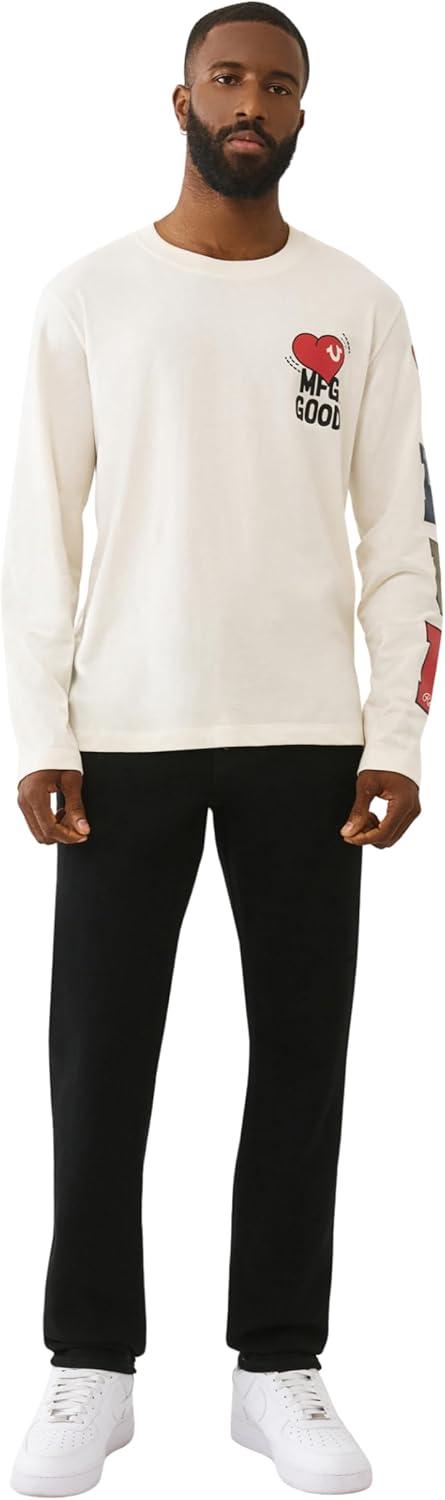 True Religion Geno SN No Flap Jeans for Men – 32″ – Black Denim Pants with Big T Stitching & Horseshoe Detail