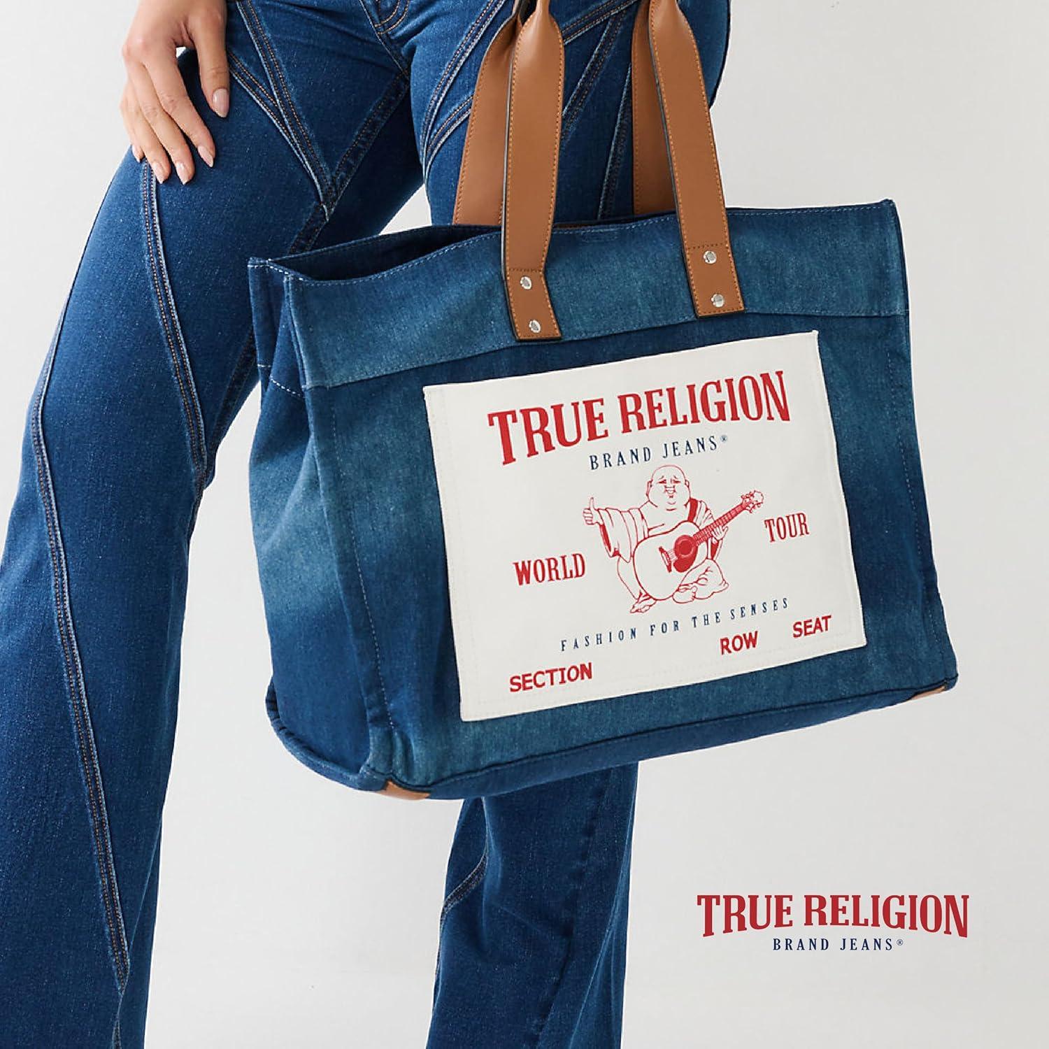 True Religion Large Tote Bag, Canvas Travel Carryall Shoulder Handbag(Blue)