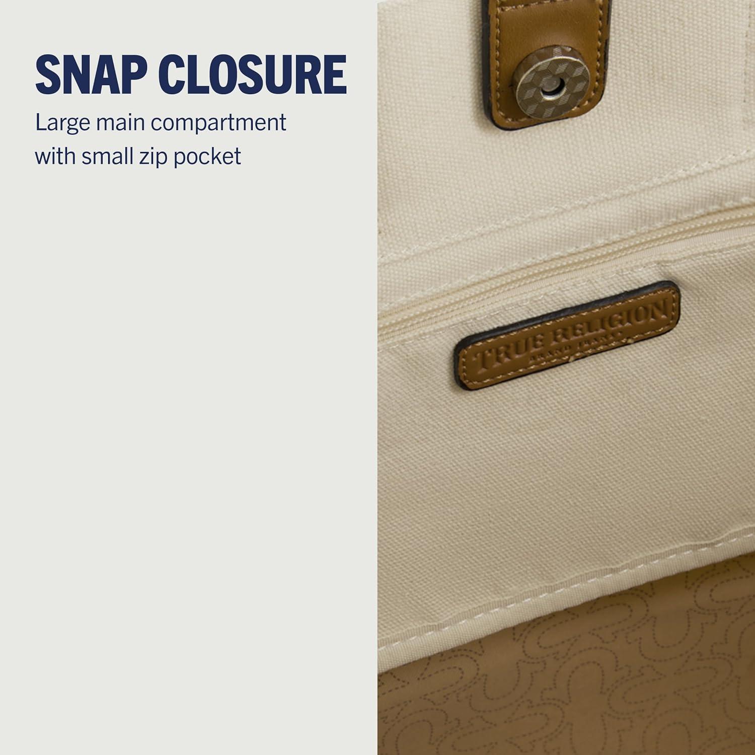 True Religion Large Tote Bag, Canvas Travel Carryall Shoulder Handbag(Natural)