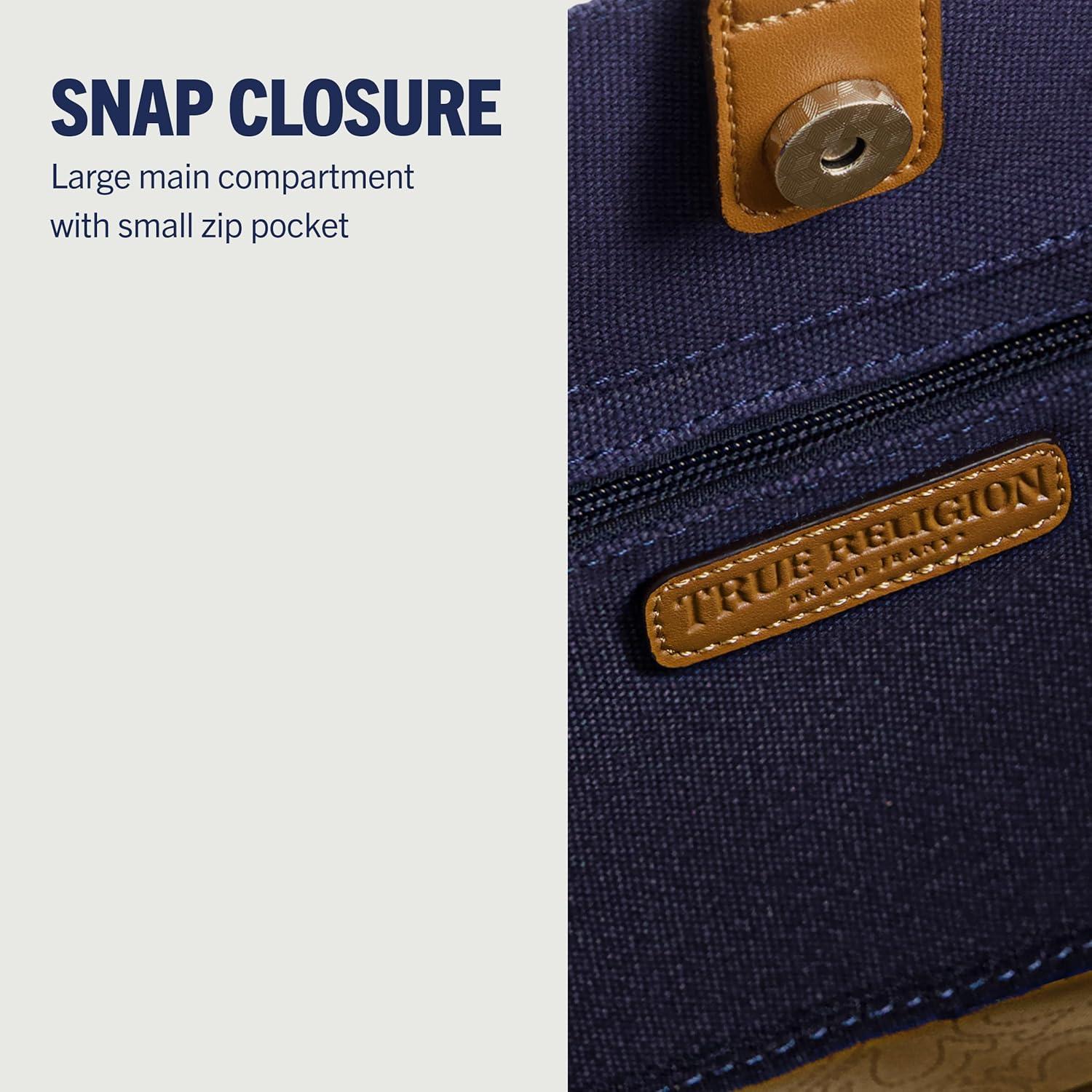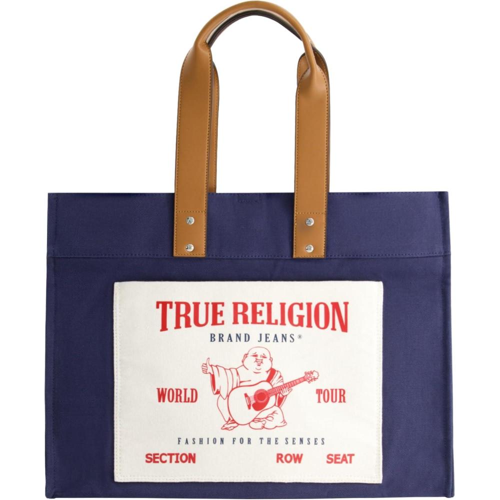 True Religion Large Tote Bag, Canvas Travel Carryall Shoulder Handbag(Navy)