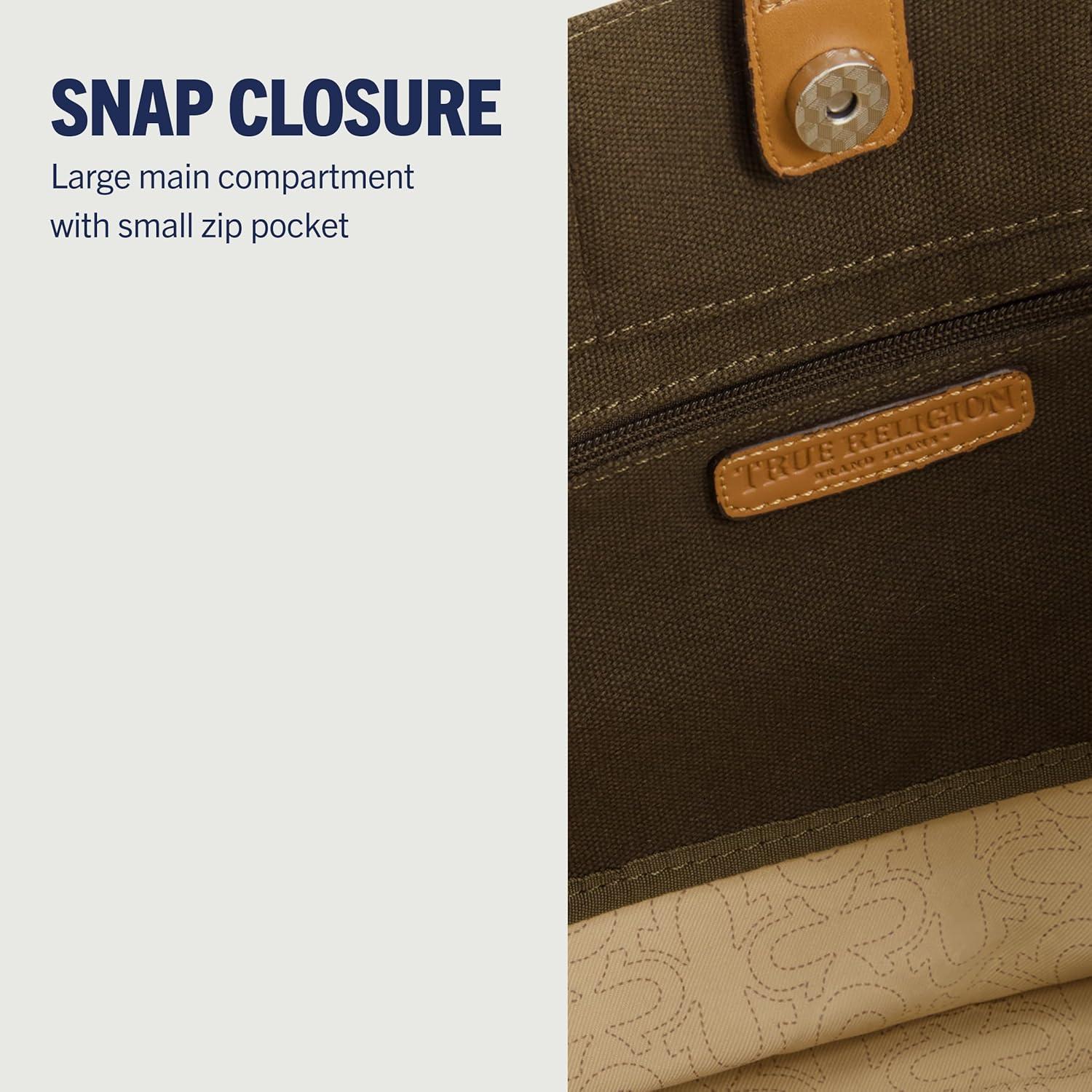 True Religion Large Tote Bag, Canvas Travel Carryall Shoulder Handbag(Olive)