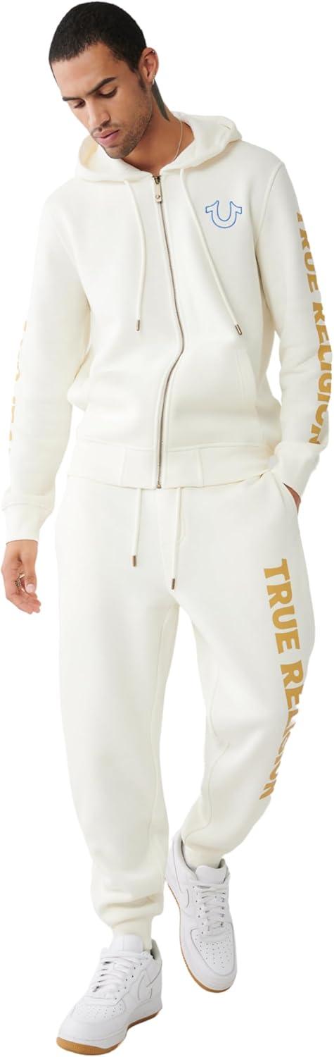 True Religion mens Antique Zip Up Logo Hoody(Winter White)