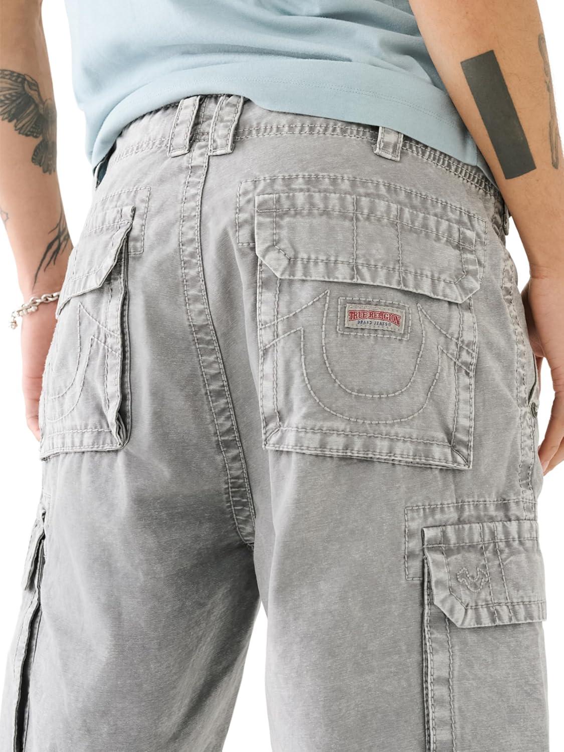True Religion Mens Big T Classic Cargo Shorts(Granite Grey)