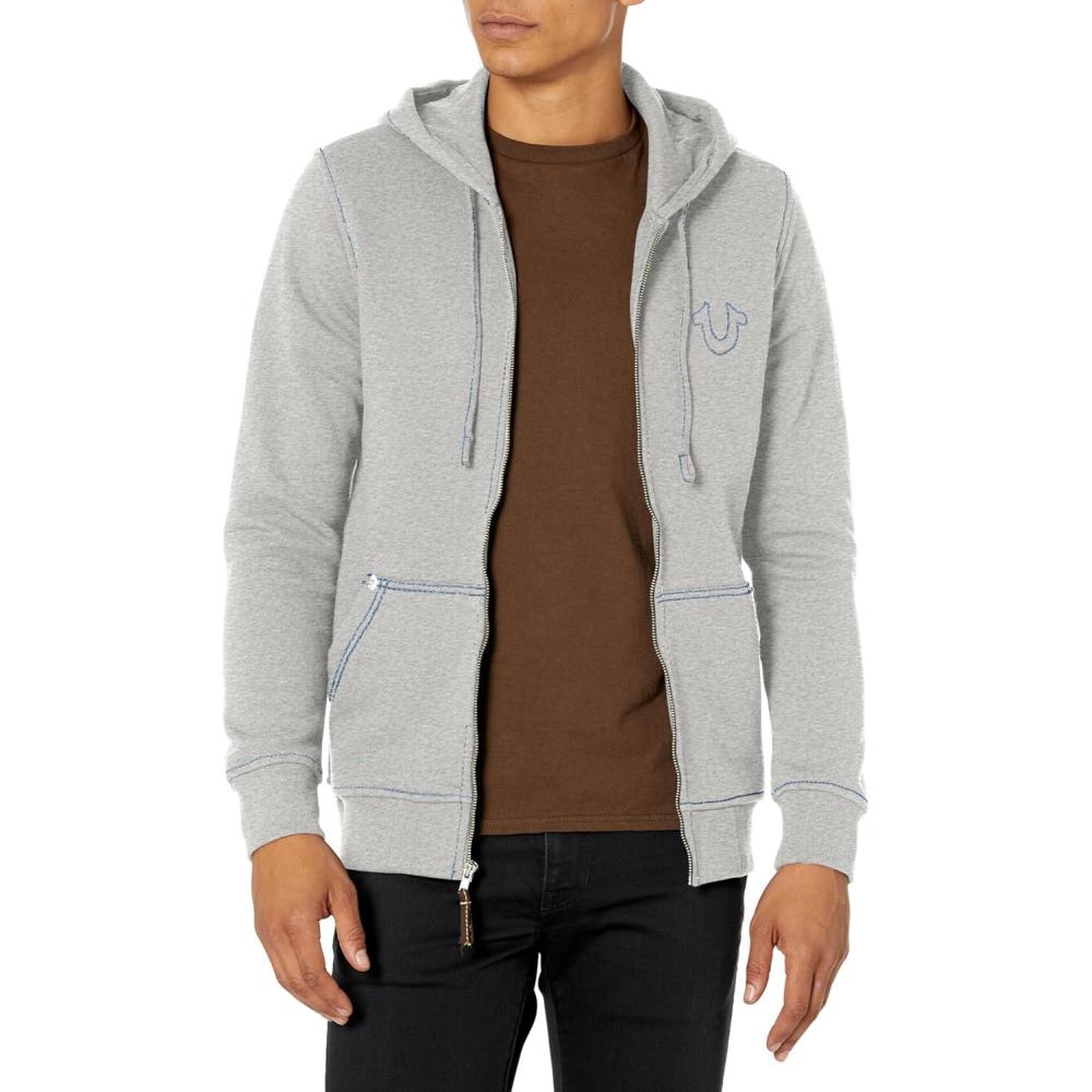 True Religion Men’s Big T Zip Up Hoodie(Heather Grey)