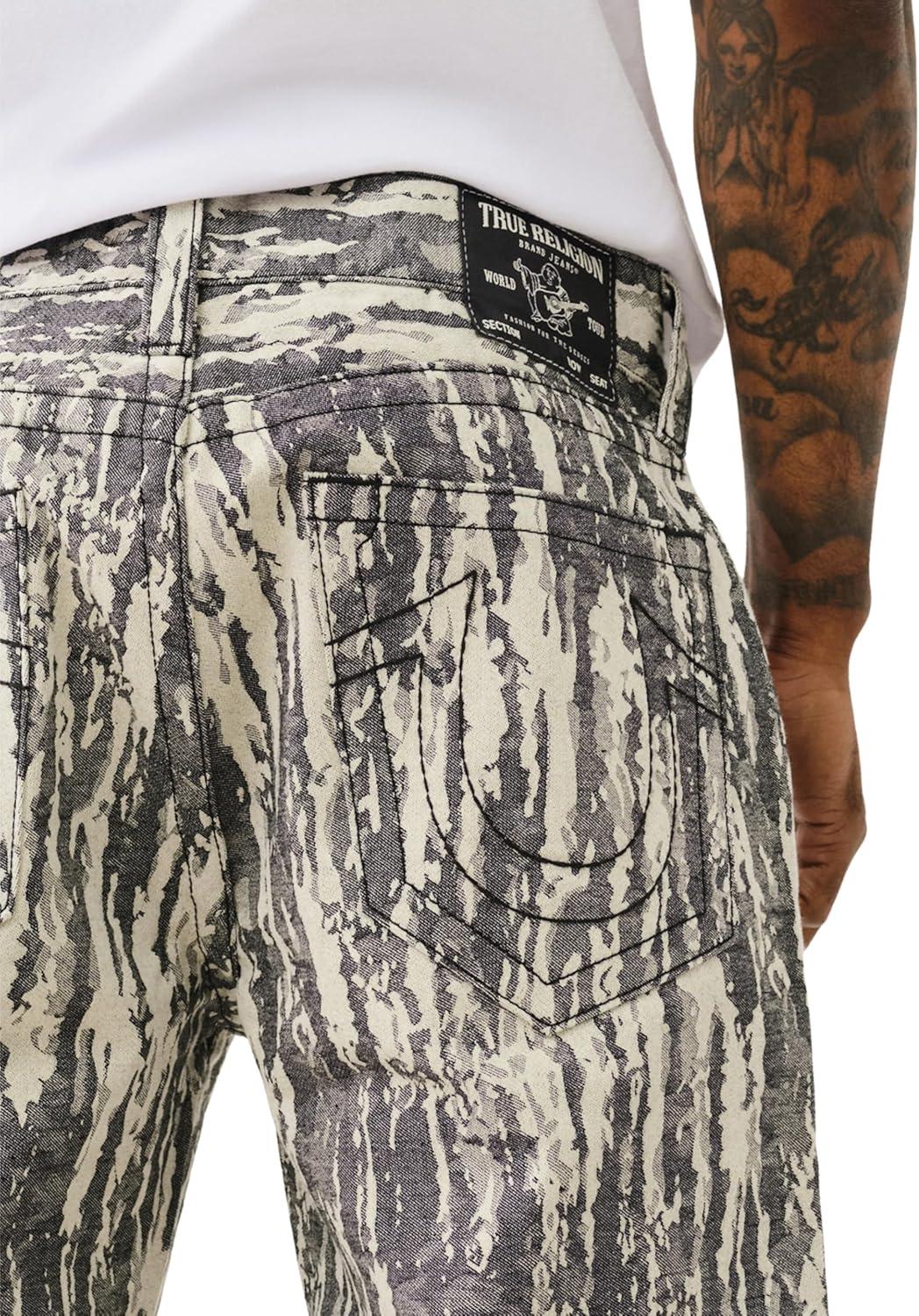 True Religion Men's Jacquard Bobby Big T HS Jeans. Crafted from premium jacquard fabric, these jeans deliver both durability and a distinctive textured look, setting you apart with every wear.