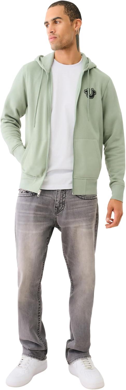 True Religion Men's Puff Print Core Zip Up Hoody (OP). Crafted from a soft cotton blend, this zip-up hoodie features raised puff print graphics for a textured, standout look. Designed with a full front zipper, adjustable drawstring hood, and ribbed cuffs and hem, it offers a perfect blend of comfort and streetwear style. Ideal for layering or wearing on its own, this hoody is a versatile addition to your casual wardrobe.