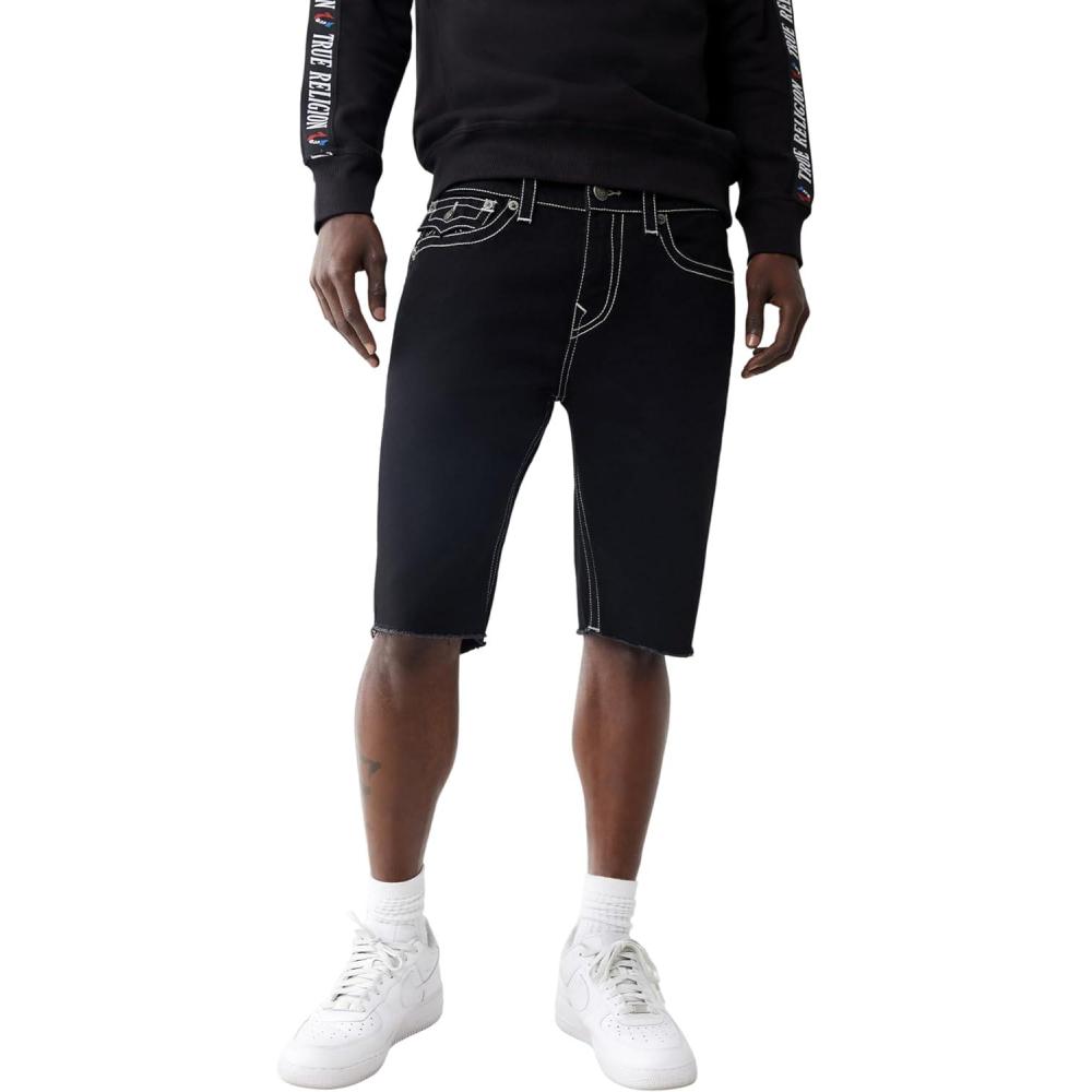 Crafted from high-quality denim, these shorts provide a comfortable, relaxed fit with just the right amount of stretch for all-day wear. The True Religion horseshoe logo embroidery on the back flap pockets and iconic contrast stitching ensure an authentic, standout finish. Whether you're dressing up with a button-down or keeping it casual with a tee, these black denim shorts deliver effortless style and versatility.