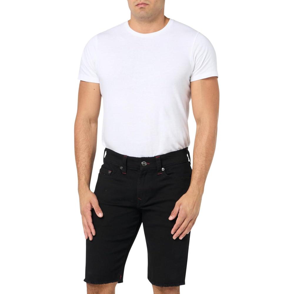 True Religion Mens Ricky Sn Nf 1/2″ Short W/Rips with Fray Hem(Rinse Black)