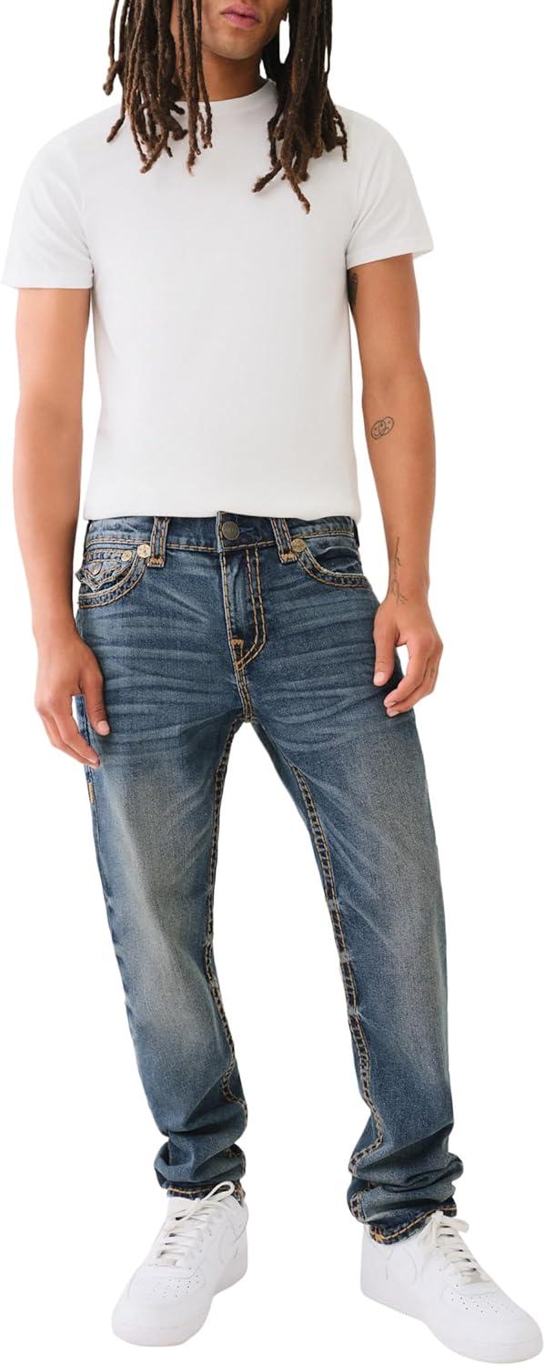 Elevate your denim game with the True Religion Men's Rocco Super T 1/2″ Flap Jeans. Featuring the brand's signature Super T stitching, these jeans offer a bold and distinctive look. The Rocco fit provides a modern, slim silhouette with a 32″ inseam, ensuring a flattering and comfortable fit. Made from premium denim, these jeans are designed for durability and long-lasting wear. The flap pockets add a touch of rugged charm and practical functionality, making these jeans perfect for both casual and semi-formal occasions. With their unique detailing and superior craftsmanship, the Rocco Super T jeans are a must-have for any fashion-forward wardrobe.