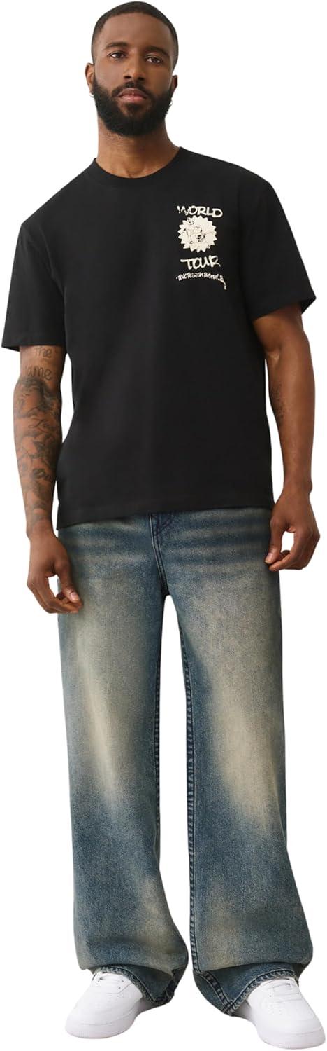 True Religion Men's Short Sleeve Speech Bubble Tee. This crewneck t-shirt features a unique speech bubble graphic that adds a playful, streetwear-inspired edge to your casual wardrobe. Designed with a regular fit and classic short sleeves, it offers all-day comfort and effortless style for any occasion.