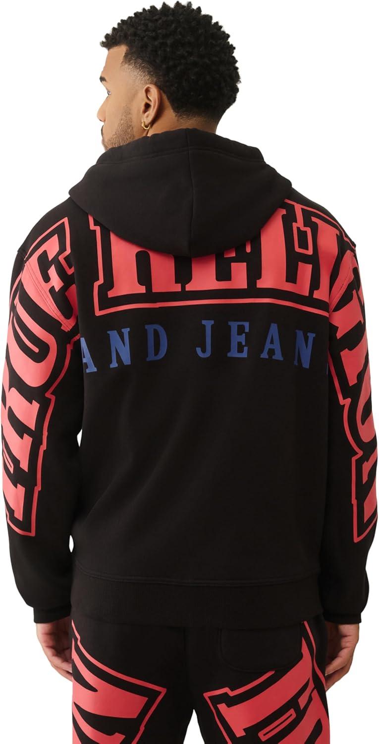 True Religion Overt Arch Logo Zip Up Hoodie for Men | Fleece-Lined Cotton Blend Sweatshirt with Hood & Kangaroo Pocket