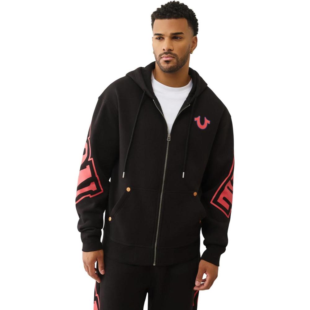 Stay warm, stay bold, and stand out in the True Religion Overt Arch Logo Zip Up Hoodie. Made from a premium cotton-polyester fleece blend, this men’s sweatshirt combines comfort with unapologetic style. Featuring a zip-up front, adjustable drawstring hood, and a split kangaroo pocket, it delivers everyday function with a streetwear edge. The arched True Religion logo and signature horseshoe graphic finish the look with undeniable authenticity. This hoodie isn’t just for staying warm—it’s for making a statement. Layer it over t-shirts or long sleeve shirts for men to create a versatile fit that’s confident, rebellious, and effortlessly cool.