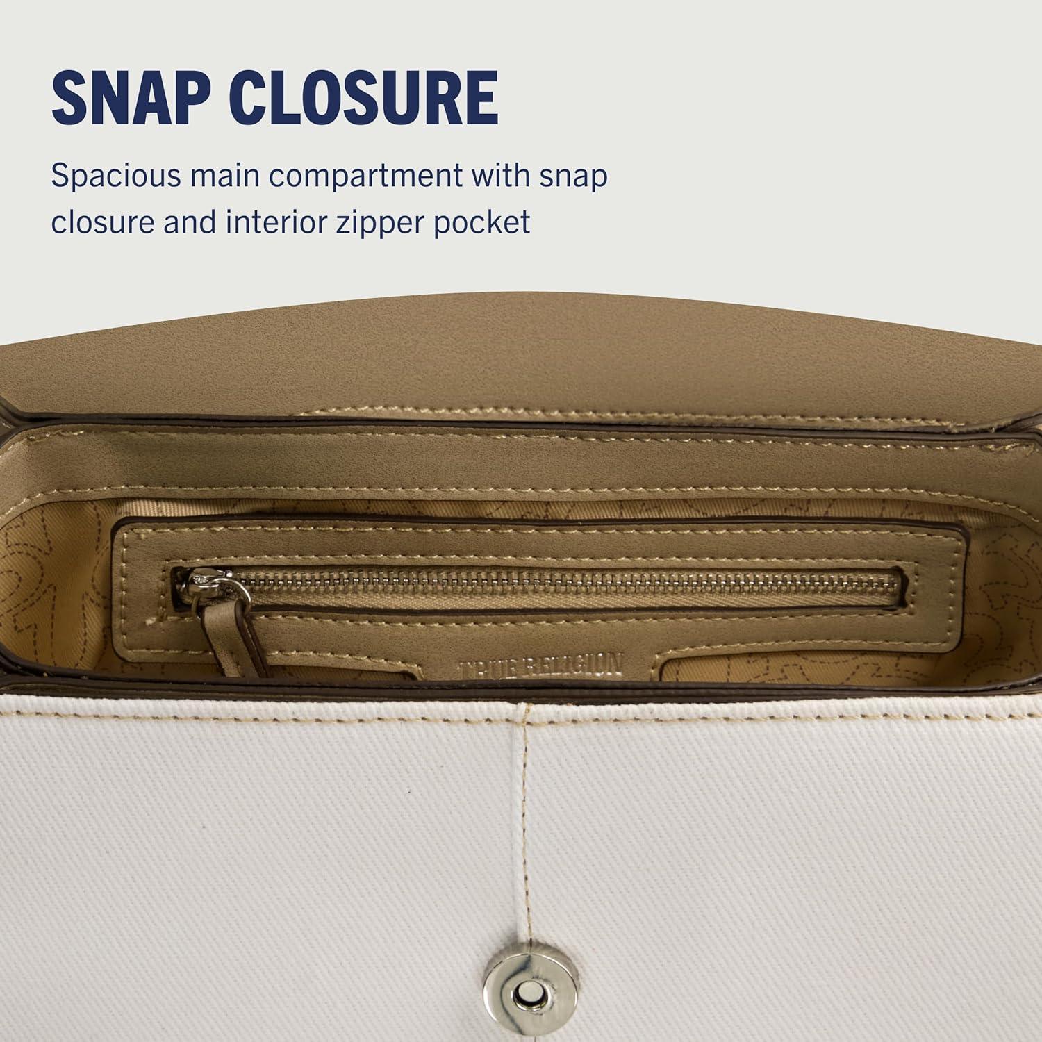 True Religion Saddle Bag, Women’s Denim and Faux Leather Crossbody Purse with Adjustable Shoulder Strap, Taupe, One Size