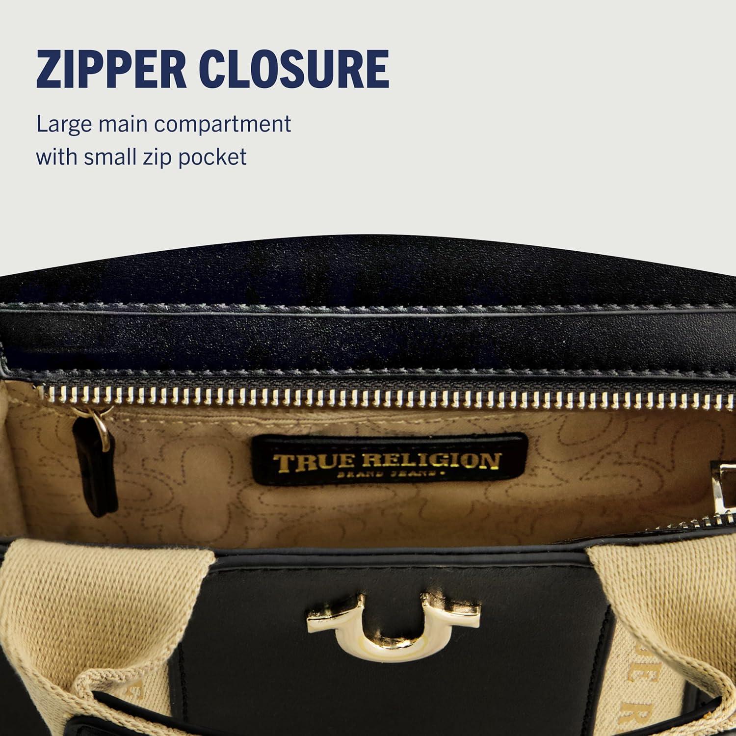 True Religion Tote Bag, Women’s Mini Handbag with Adjustable Shoulder Strap(Black)