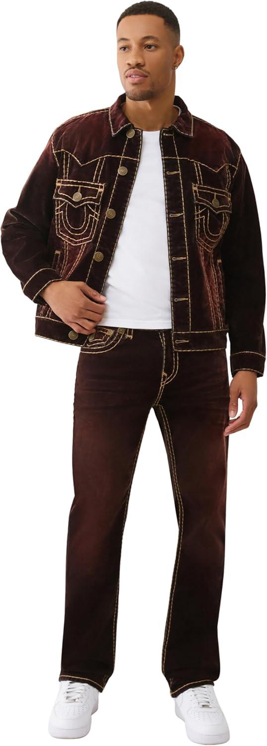 True Religion Velvet Ricky Super T Flap Pant 34” – Men’s Pants with Velvet Finish & Iconic Horseshoe Stitching