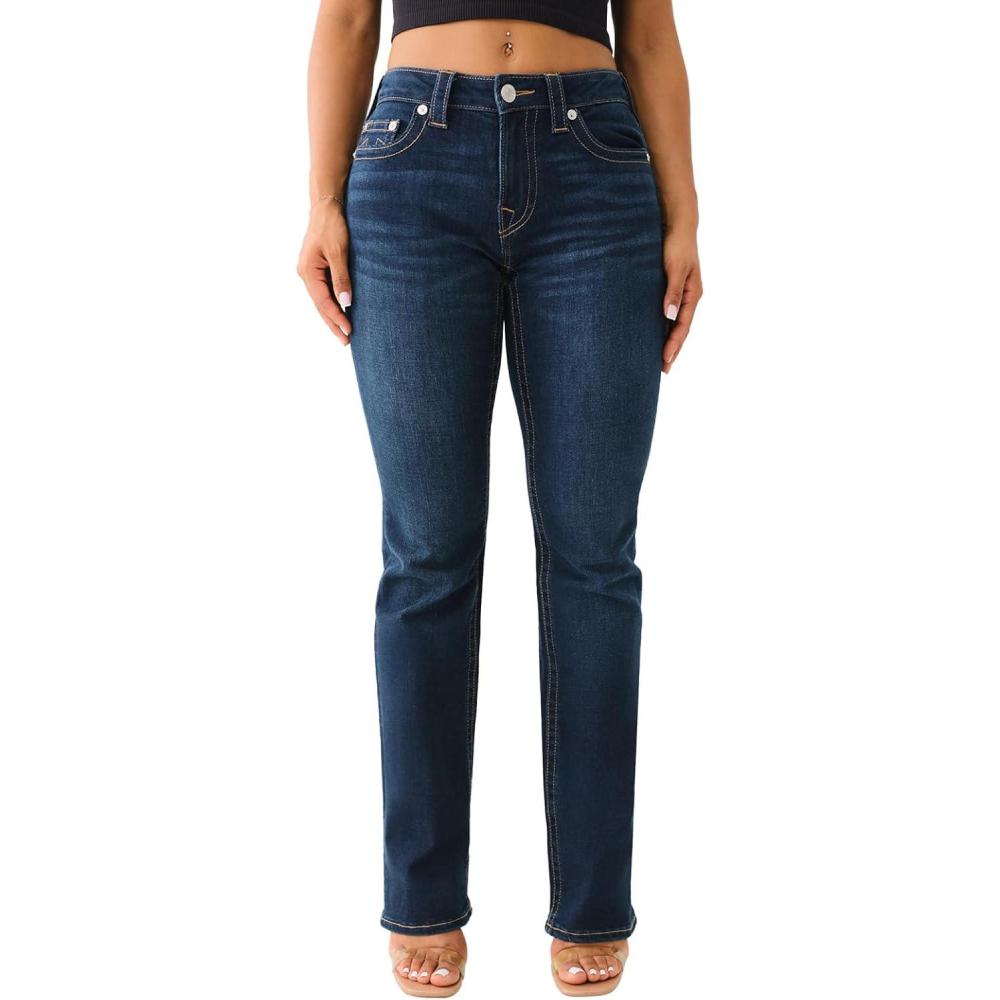 True Religion Women’s Becca Mid Rise Bootcut Crystal Flap – Single Needle Stitching Peak Spot Jeans Pant(Indigo Upgrade)