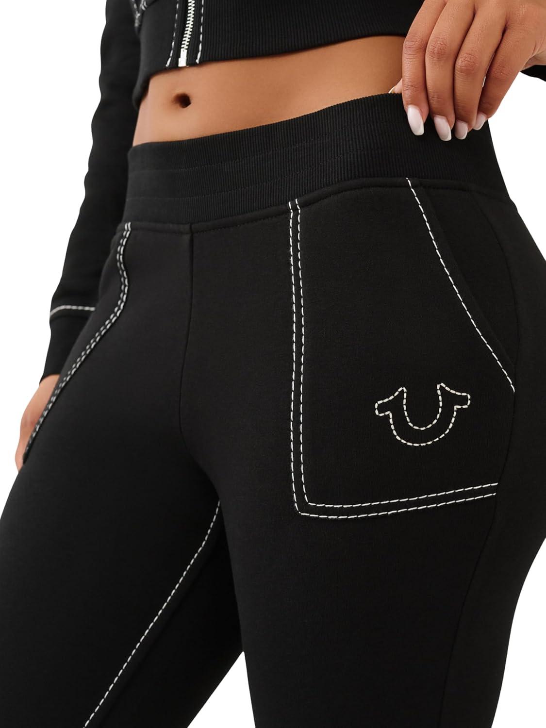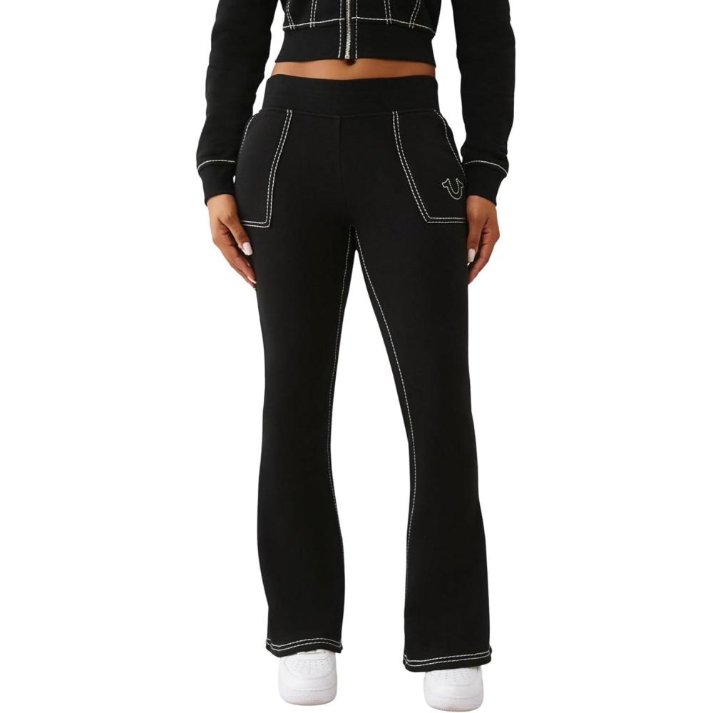 True Religion Women’s Big T Flare Pants | Wide Leg Sweatpants with Sign-Stitching & Pull-On Fit(Jet Black)