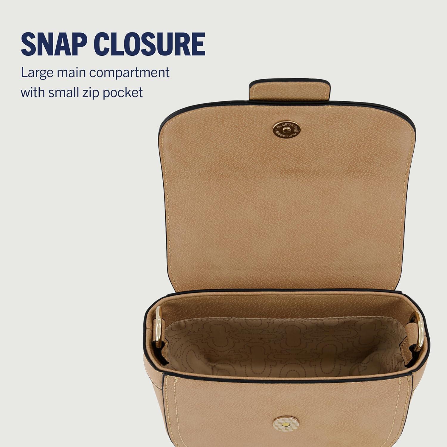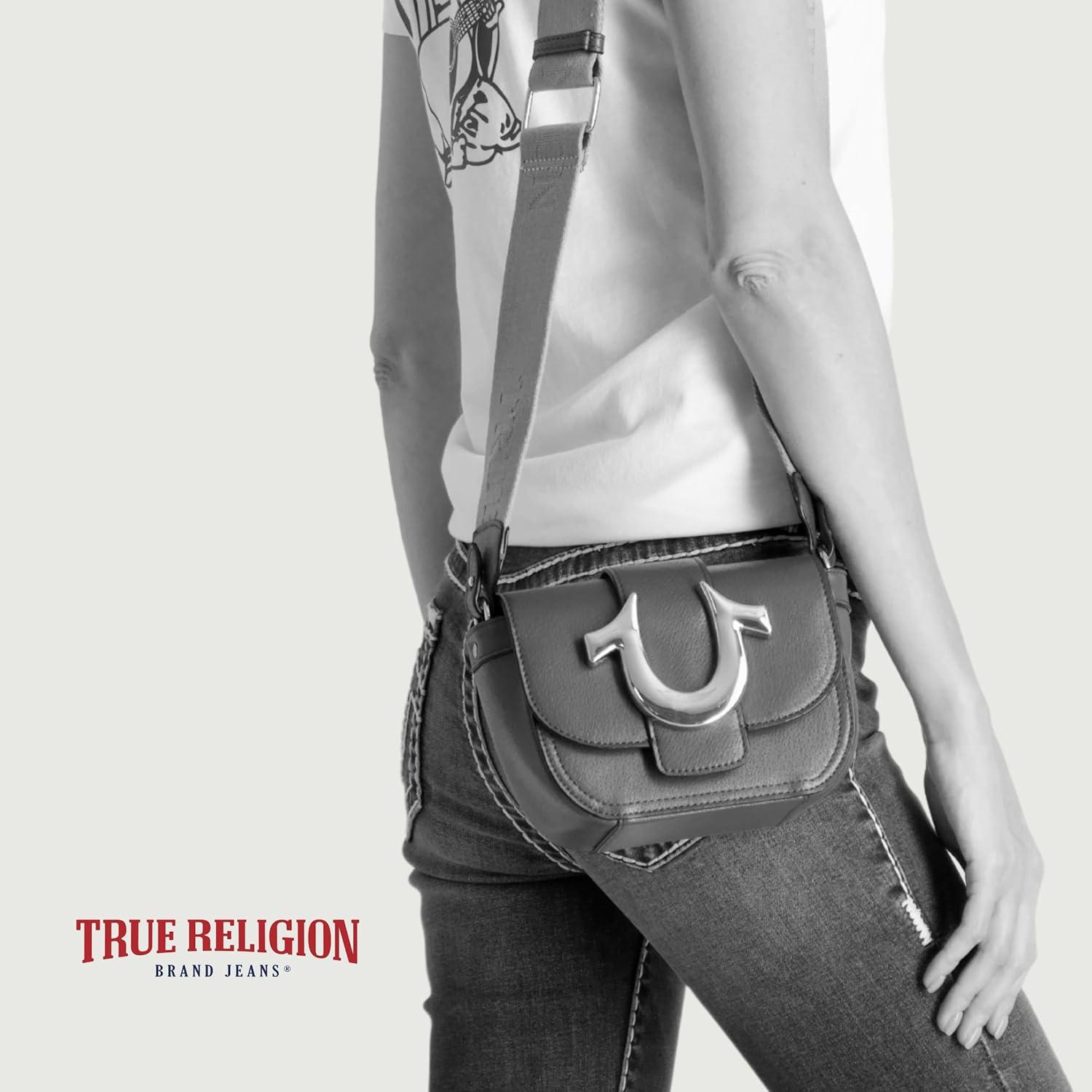 True Religion Women’s Crossbody Bag, Mini Flap Adjustable Shoulder Handbag with Horseshoe Logo(Tan)