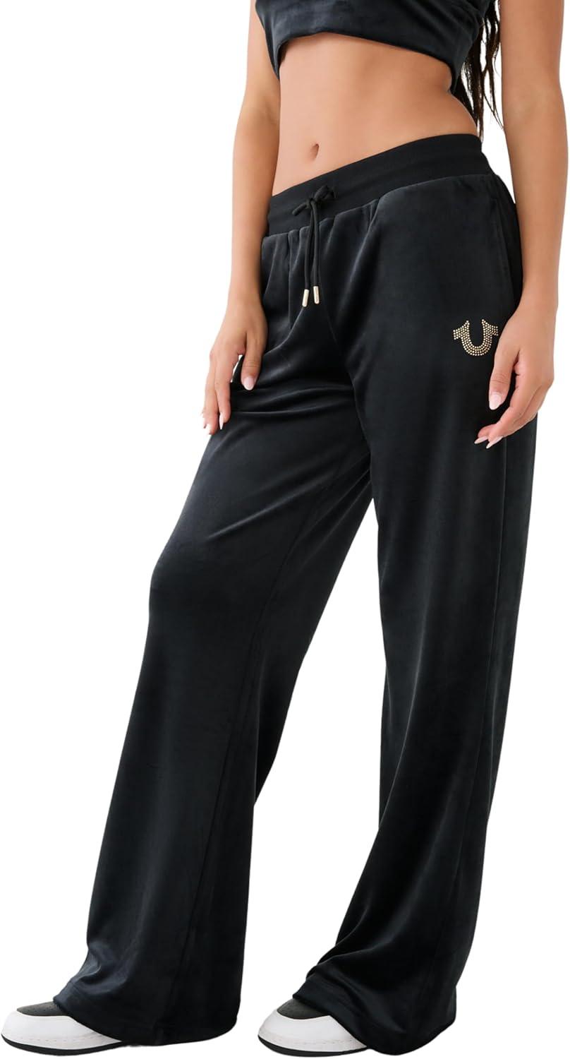 True Religion Women’s Misses Velour Straight Leg Pant(Jet Black)