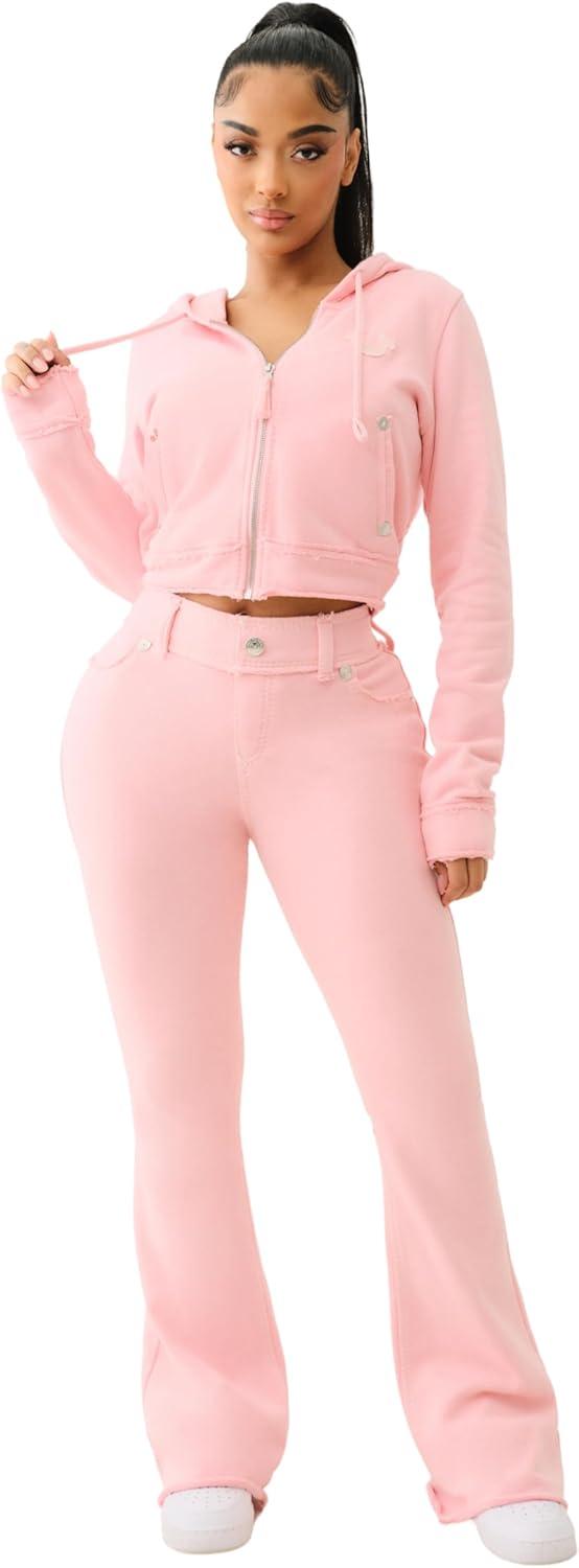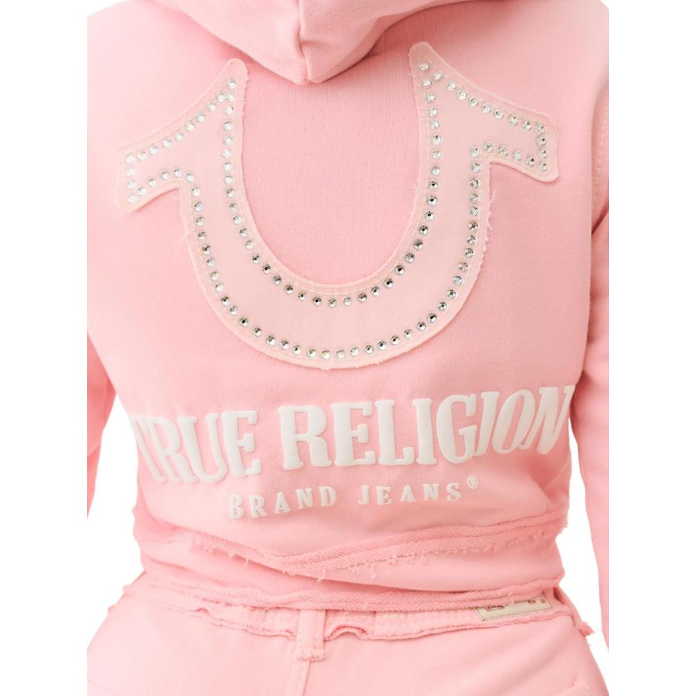 True Religion Women’s Raw Edge Big T Shrunken Zip Hoodie – Candy Pink