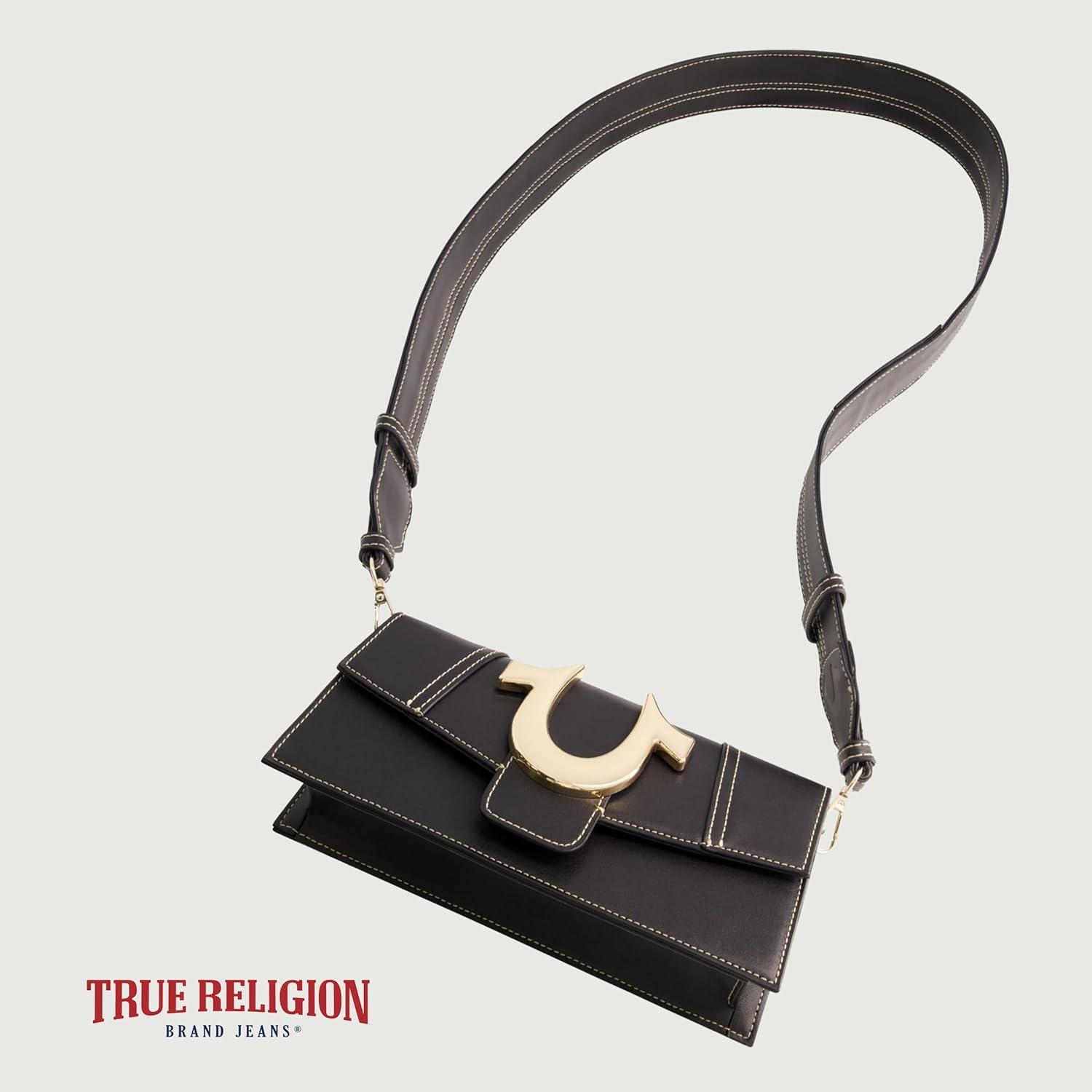 True Religion Women’s Shoulder Bag Purse, Mini Flap Crossbody Handbag with Horseshoe Logo(Black)