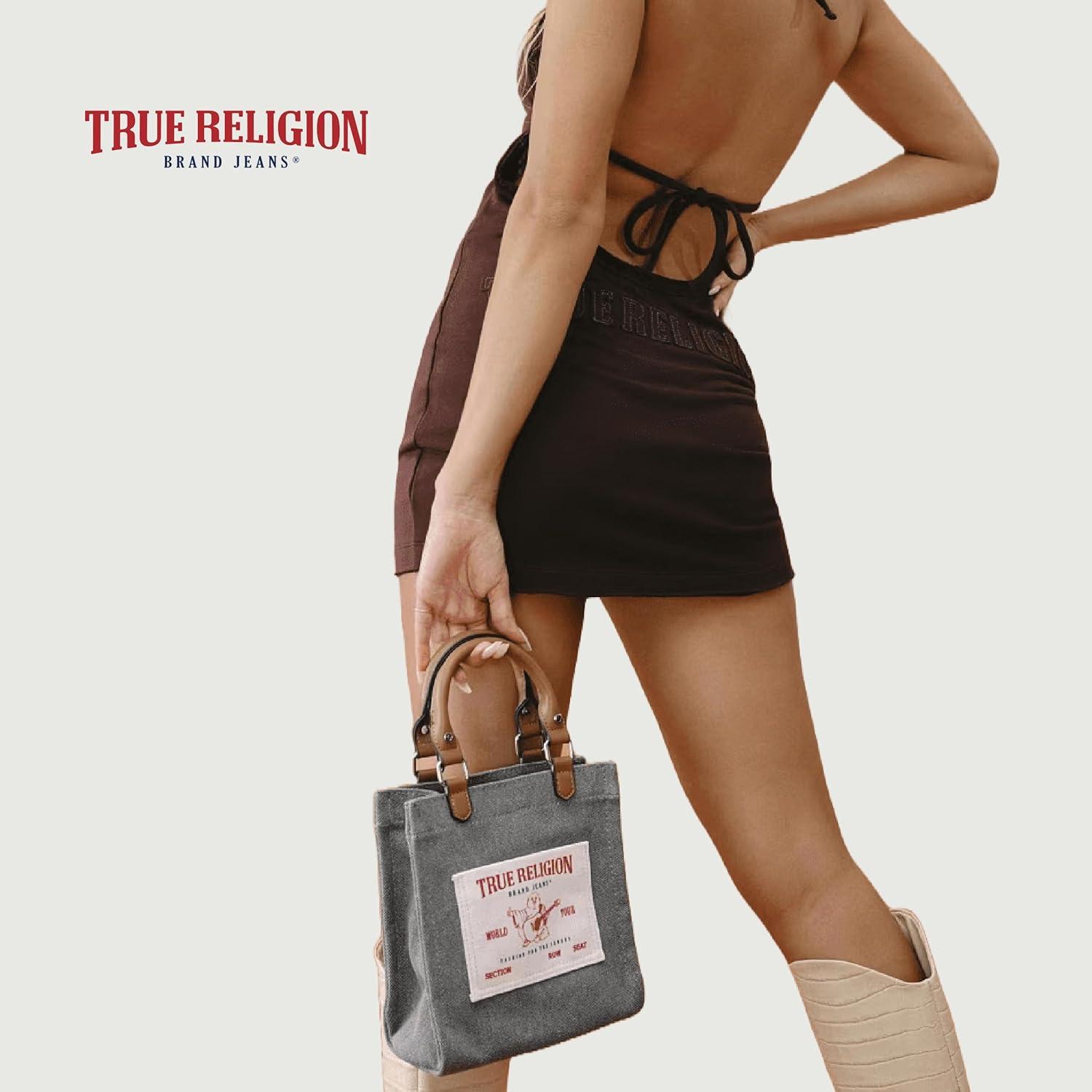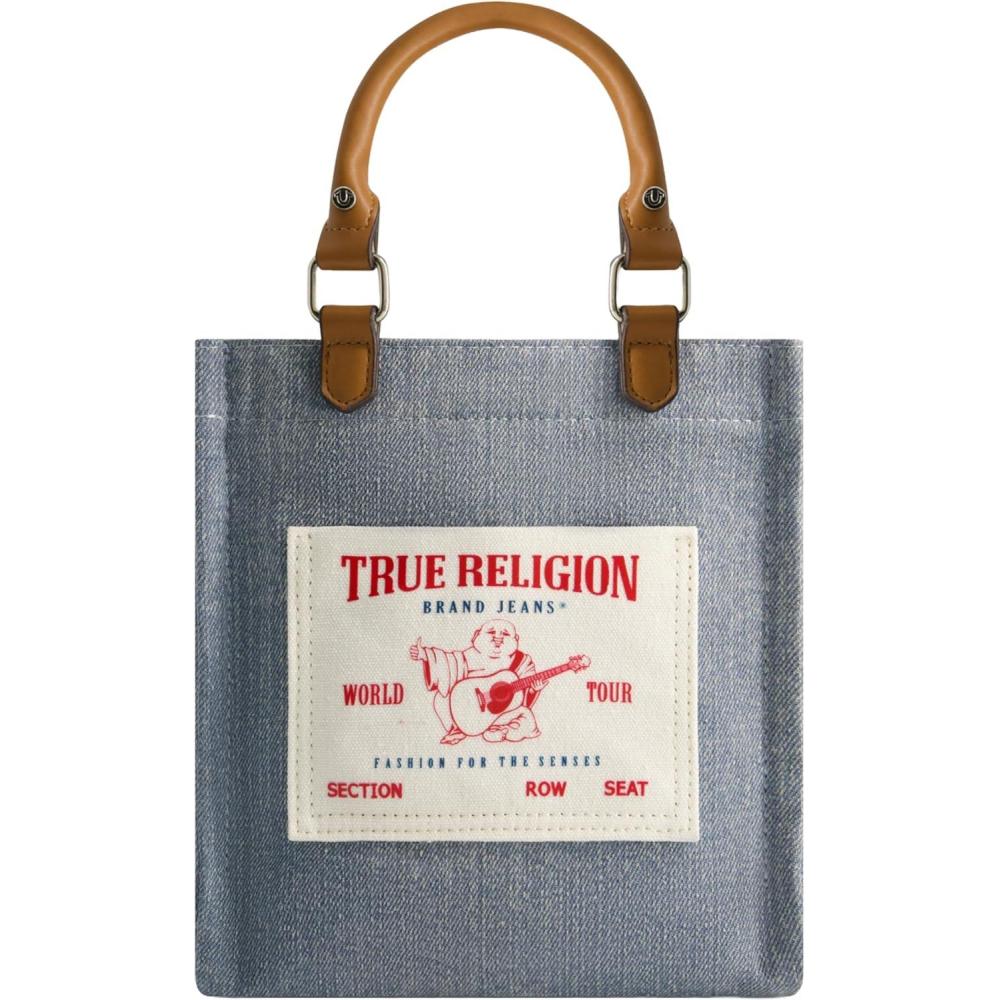 True Religion Women’s Tote Bag, Buddha Pocket Travel Shoulder Handbag with Adjustable Removable Crossbody Strap(Denim)