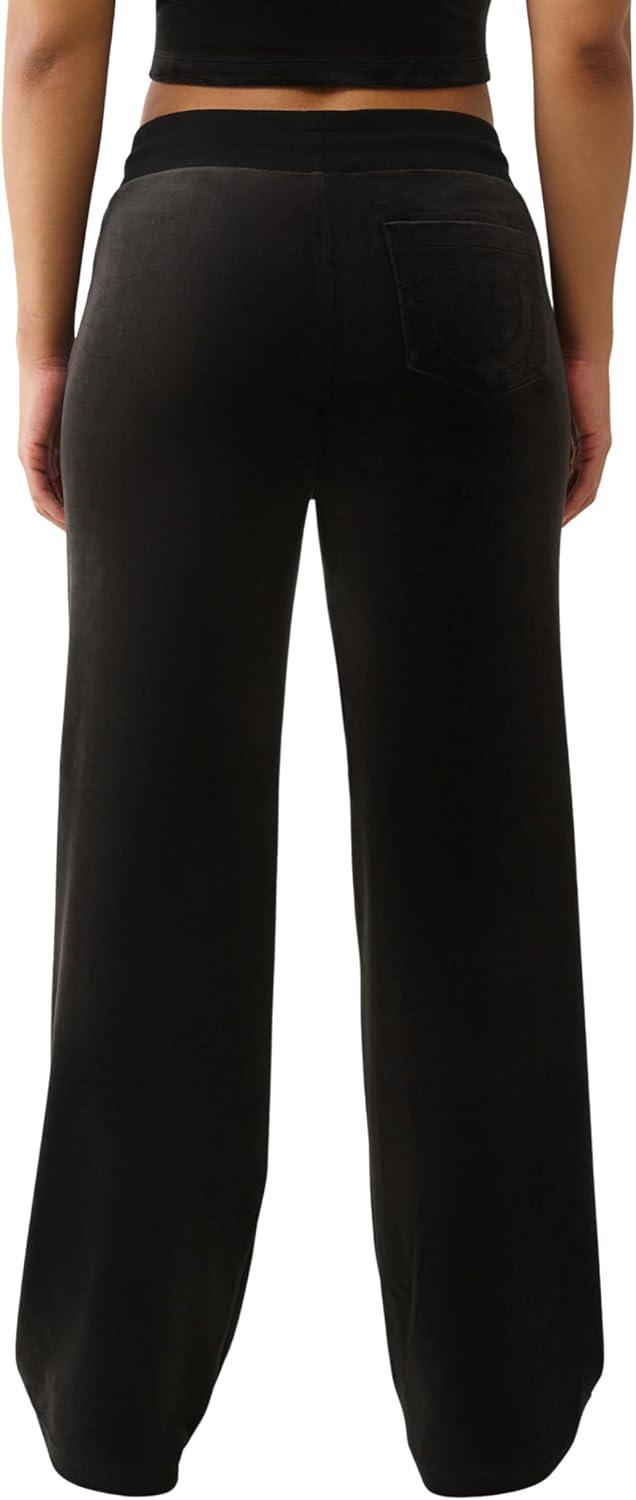 True Religion Women’s Velour Sweatpants Straight Leg Track Pants with Crystal Horseshoe Logo(Jet Black)