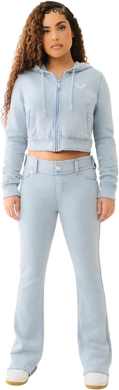 True Religion Women’s Washed Raw Edge Big T Bootcut Pants | Distressed Denim with Signature Big T Stitching