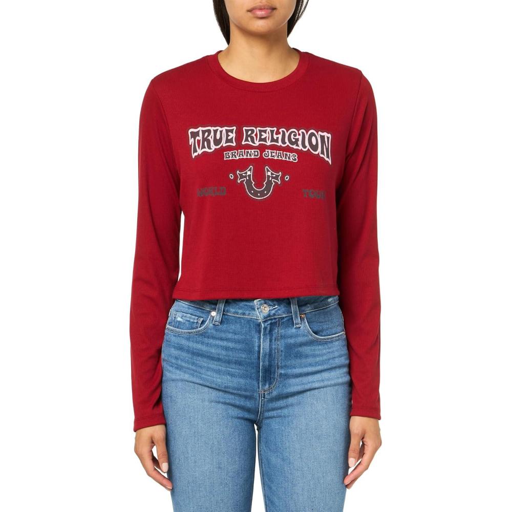 True Religion Women’s Western Logo Rib Baby Tee(Red Dahlia)