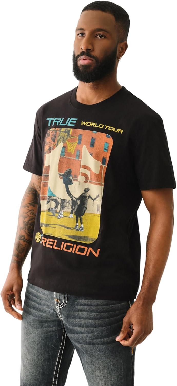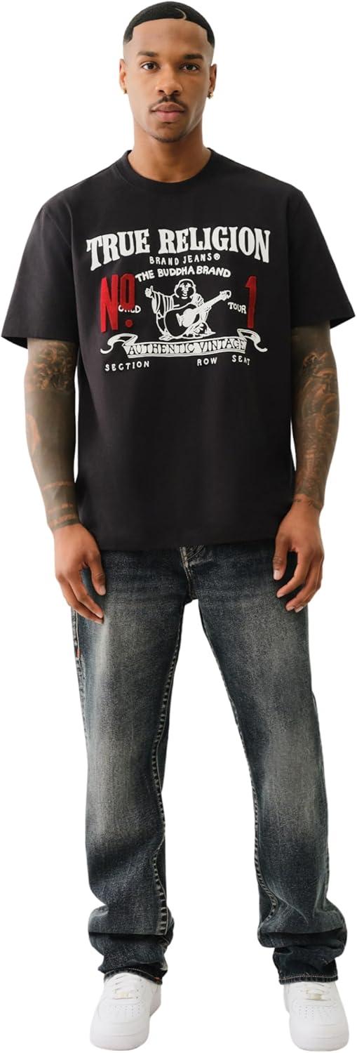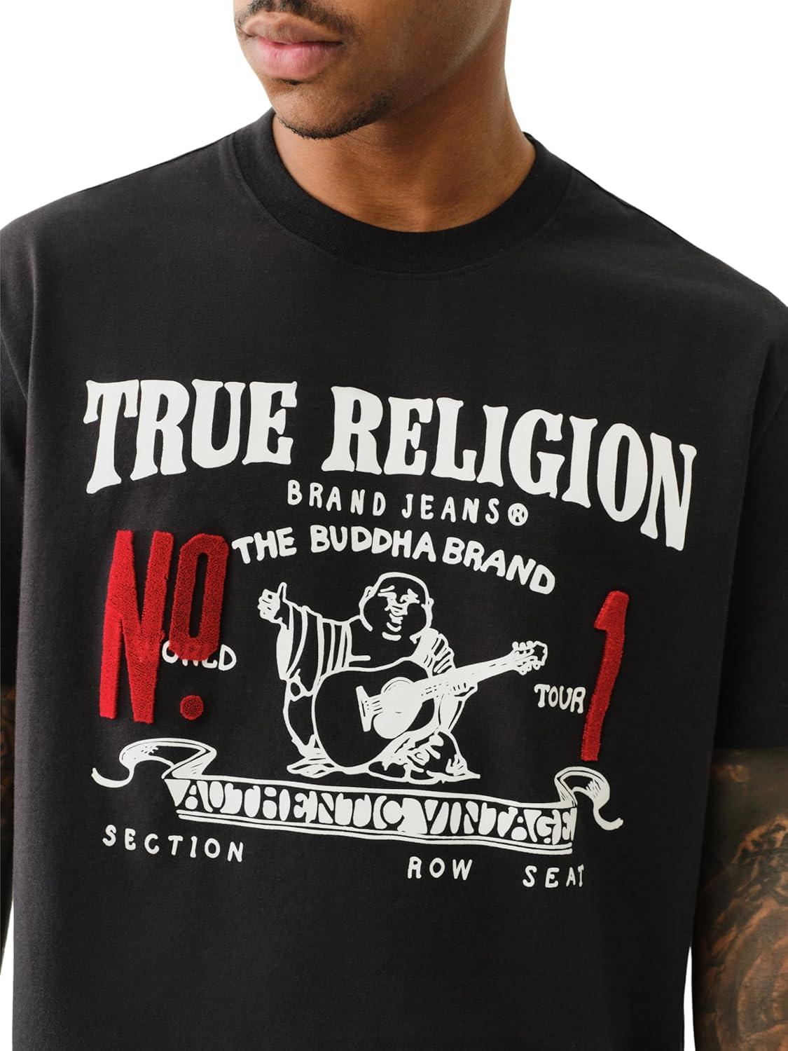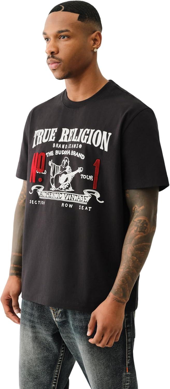 True Religion Womens Buddha Slim Vneck Tee(Jet Black)