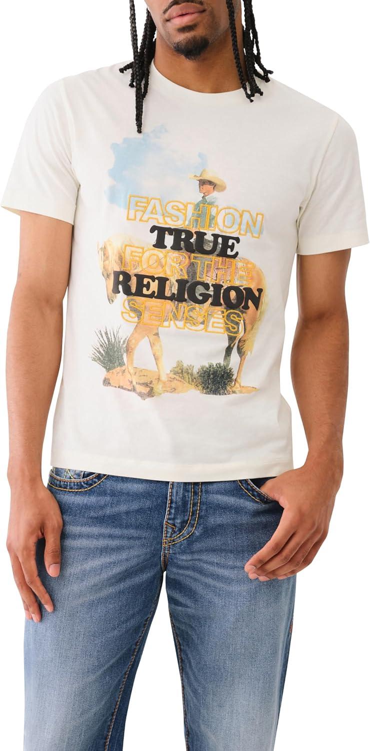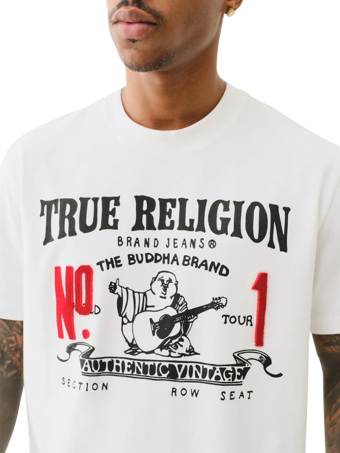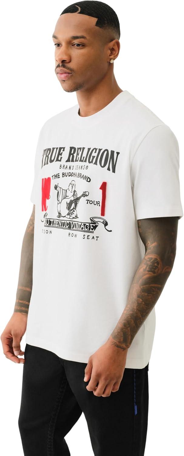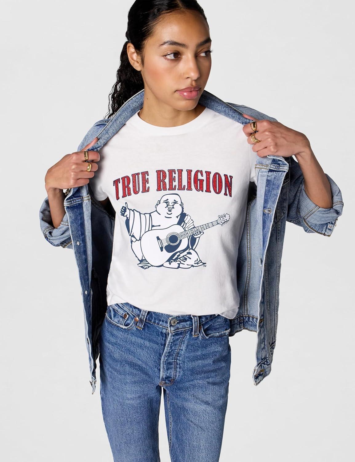 True Religion Women’s V-Neck Buddha Logo Tee(Optic White)