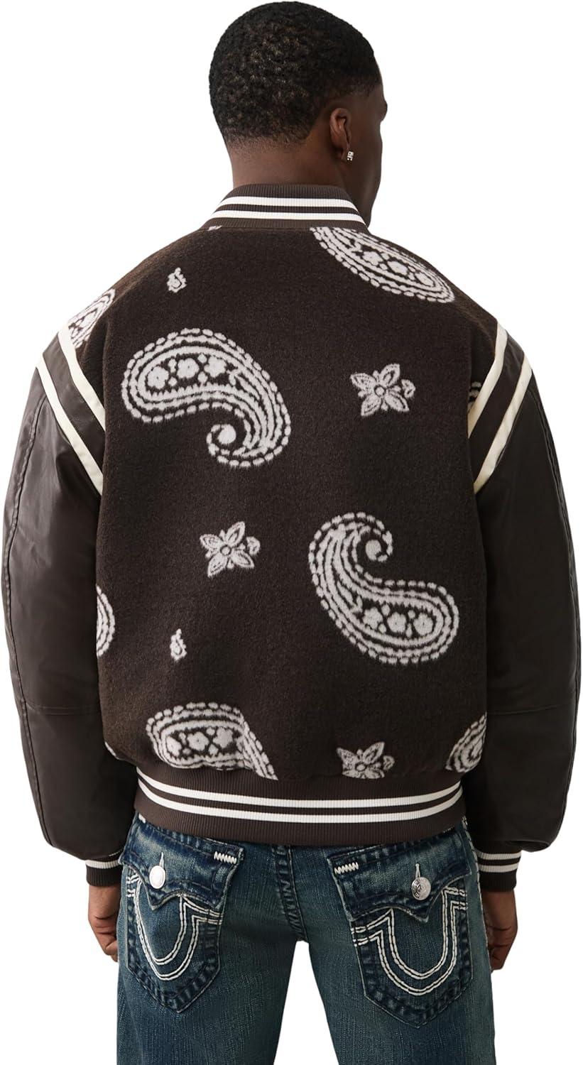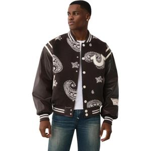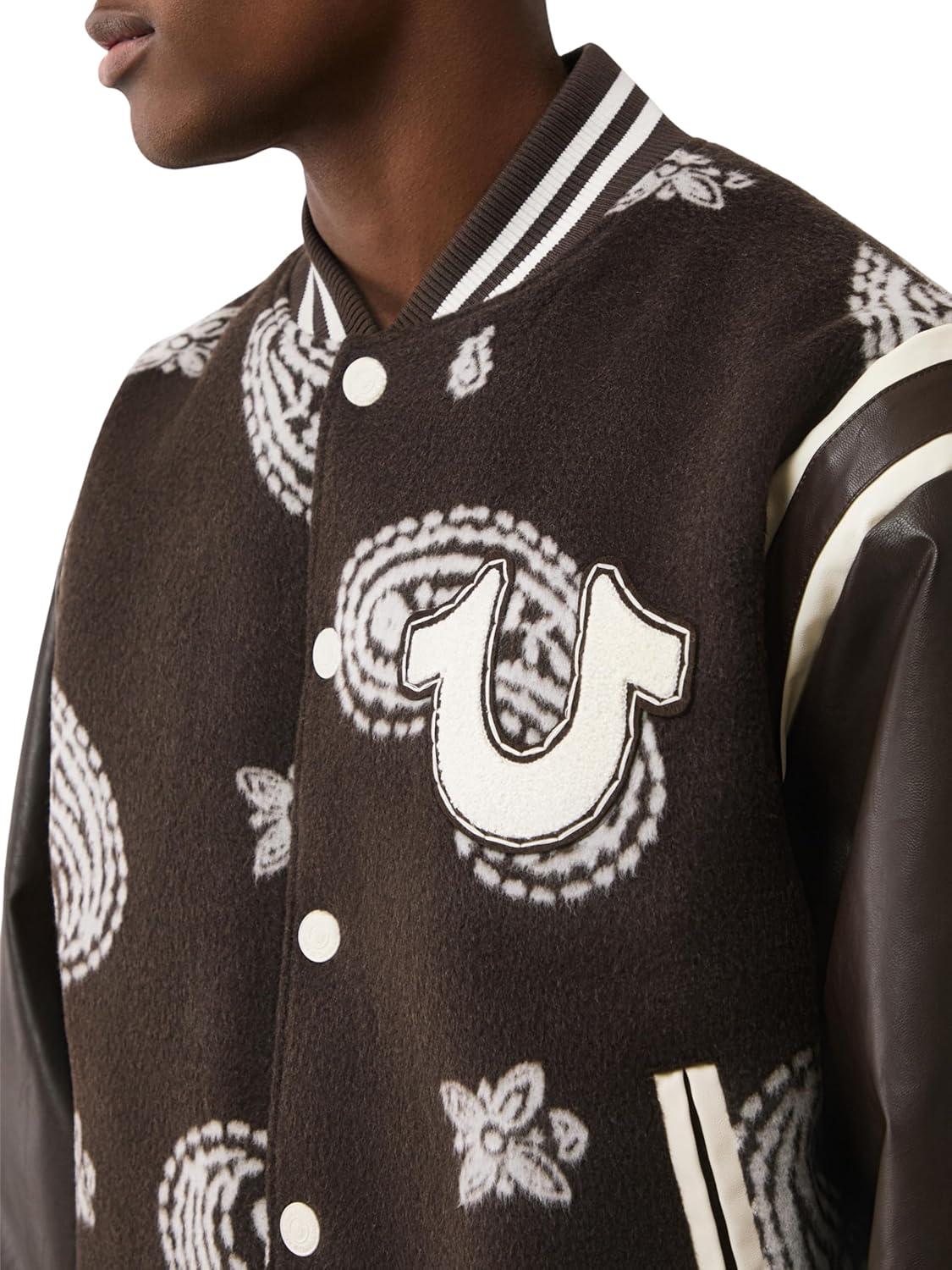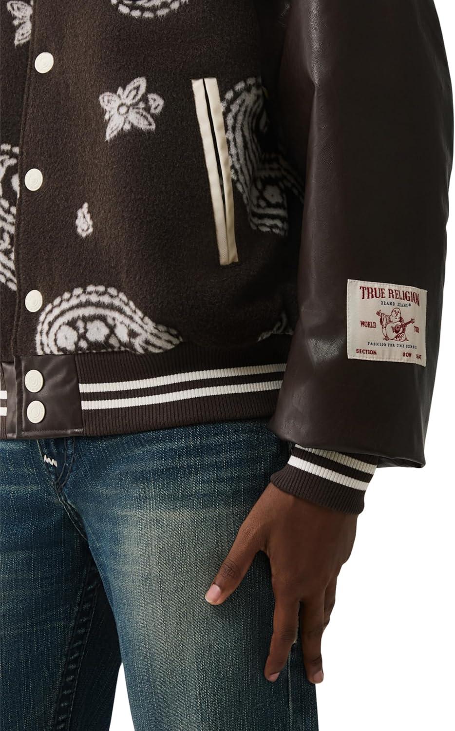 True Religion Boys Varsity Jacket – Stylish Button Front Jacket with Faux Leather Sleeves(Black-white)