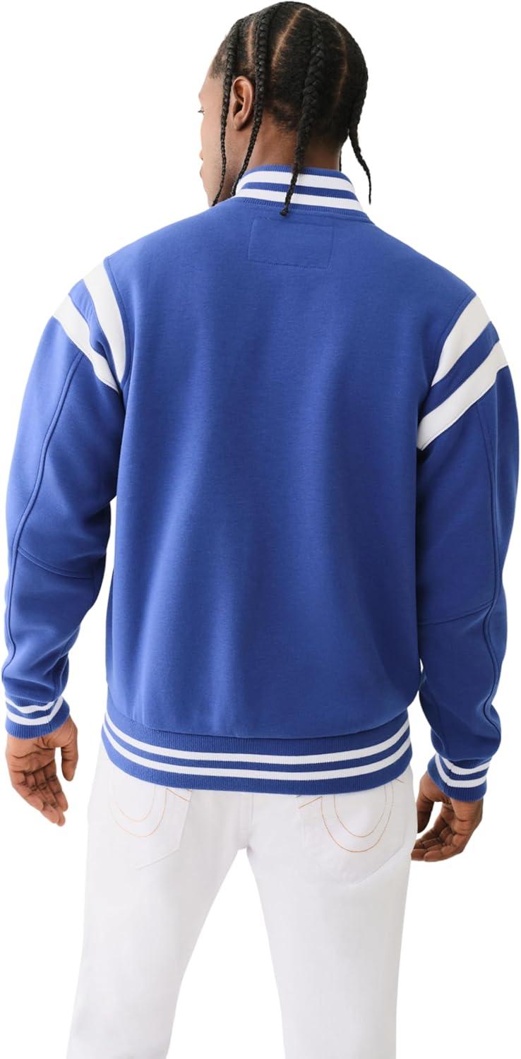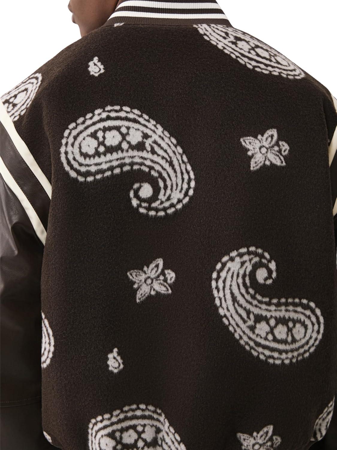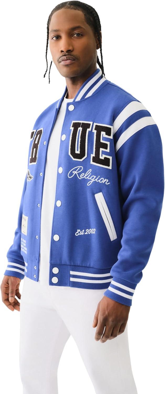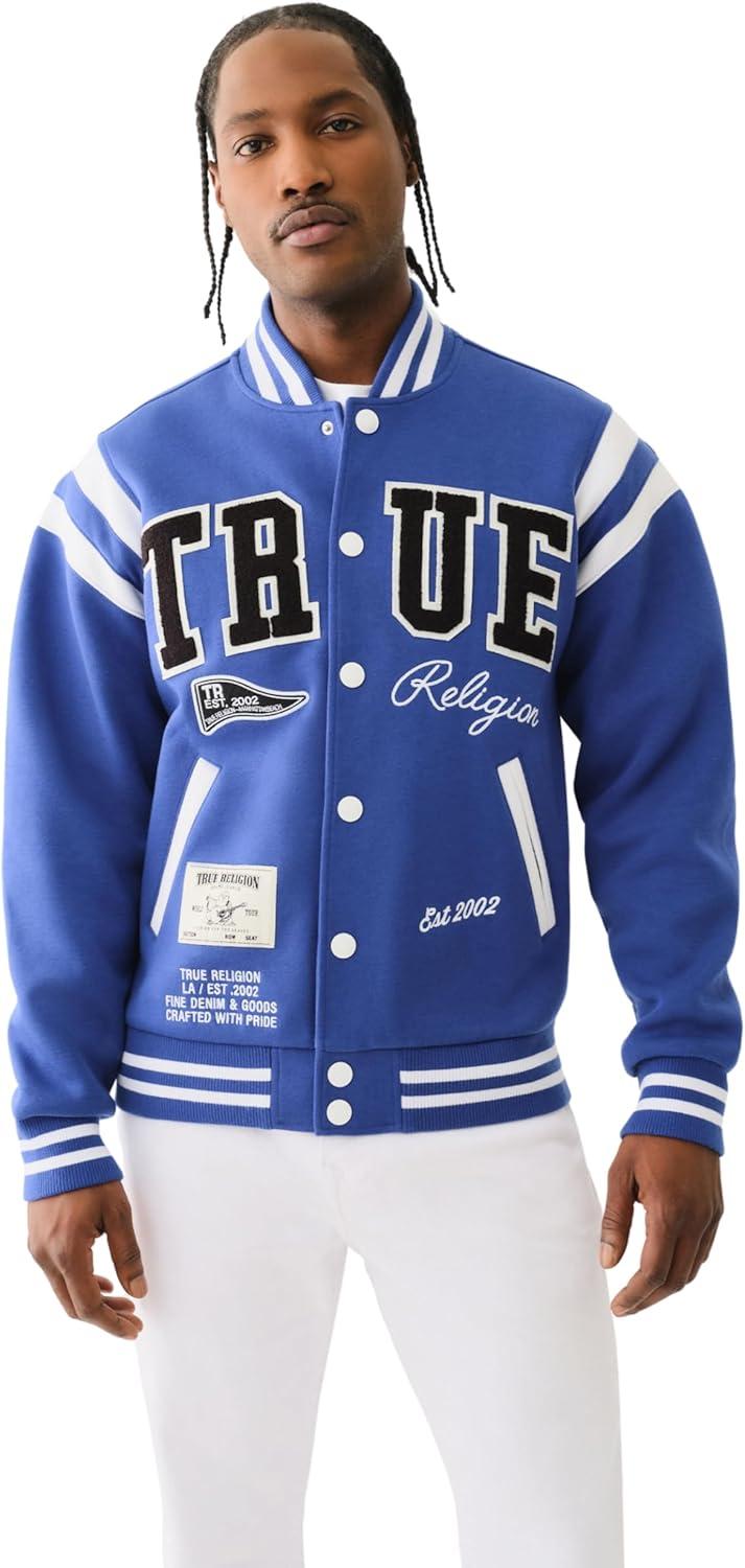 True Religion Boys Varsity Jacket – Stylish Button Front Jacket with Faux Leather Sleeves(Black-white)