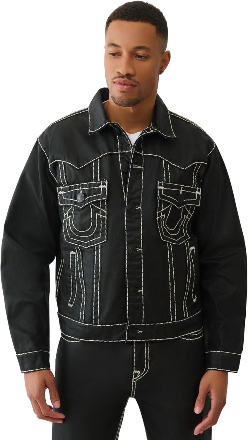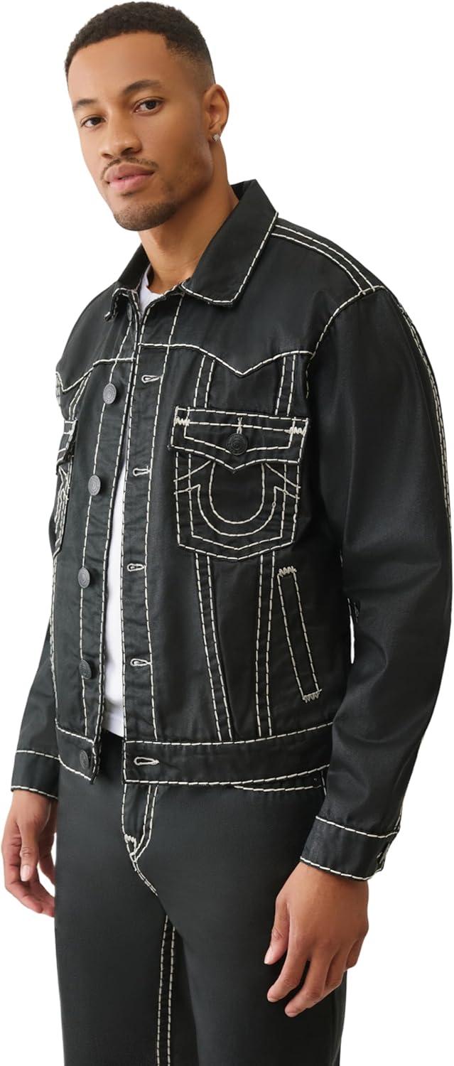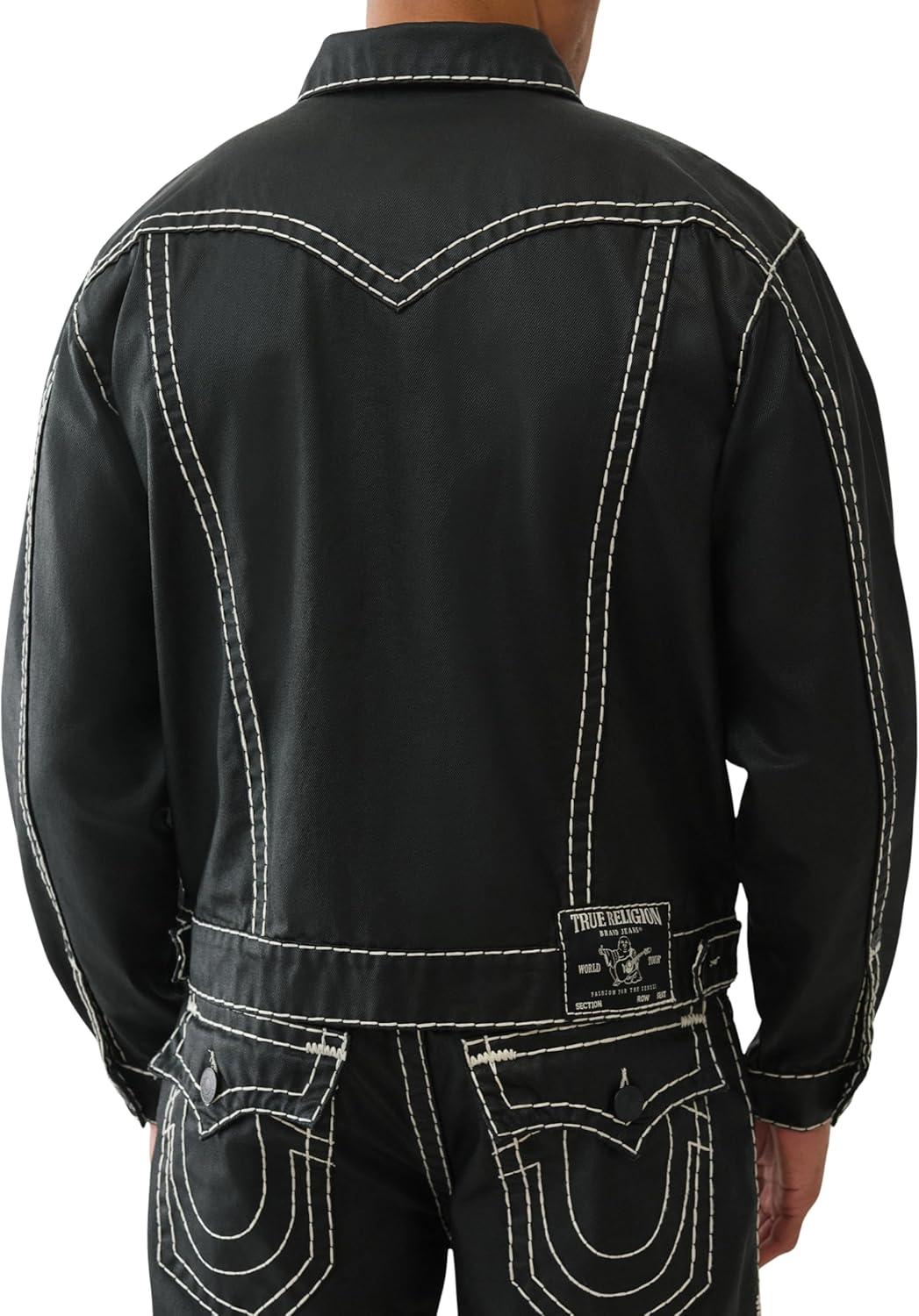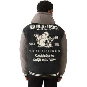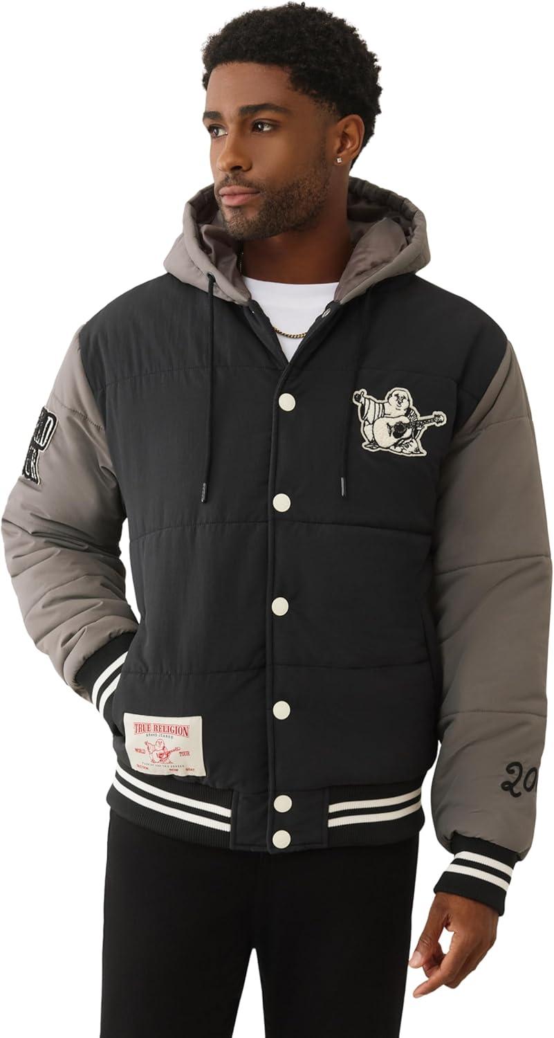 True Religion Boys Varsity Jacket – Stylish Button Front Jacket with Faux Leather Sleeves(Black)