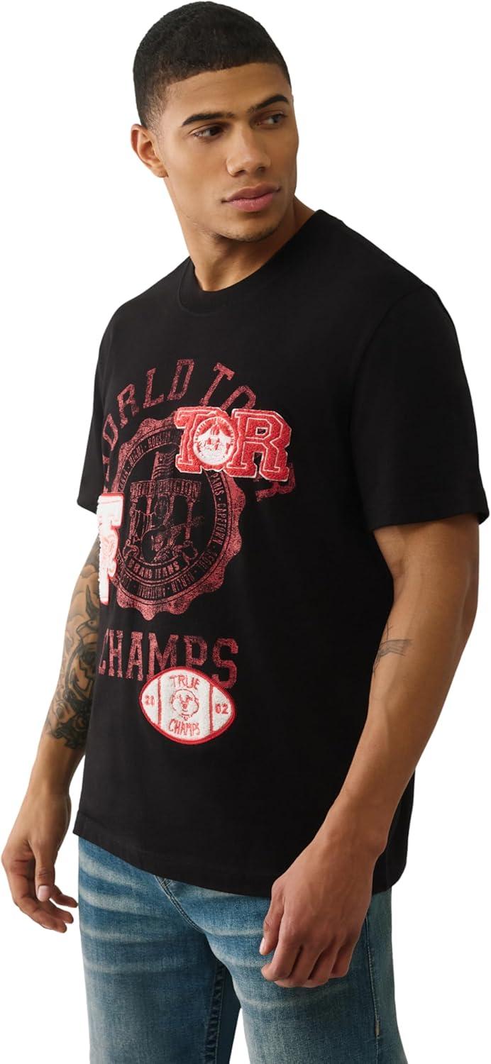 True Religion Boys Tee Shirts Short Sleeve Cotton T-Shirt for Boys Graphic Tees(Black-gold Metallic)
