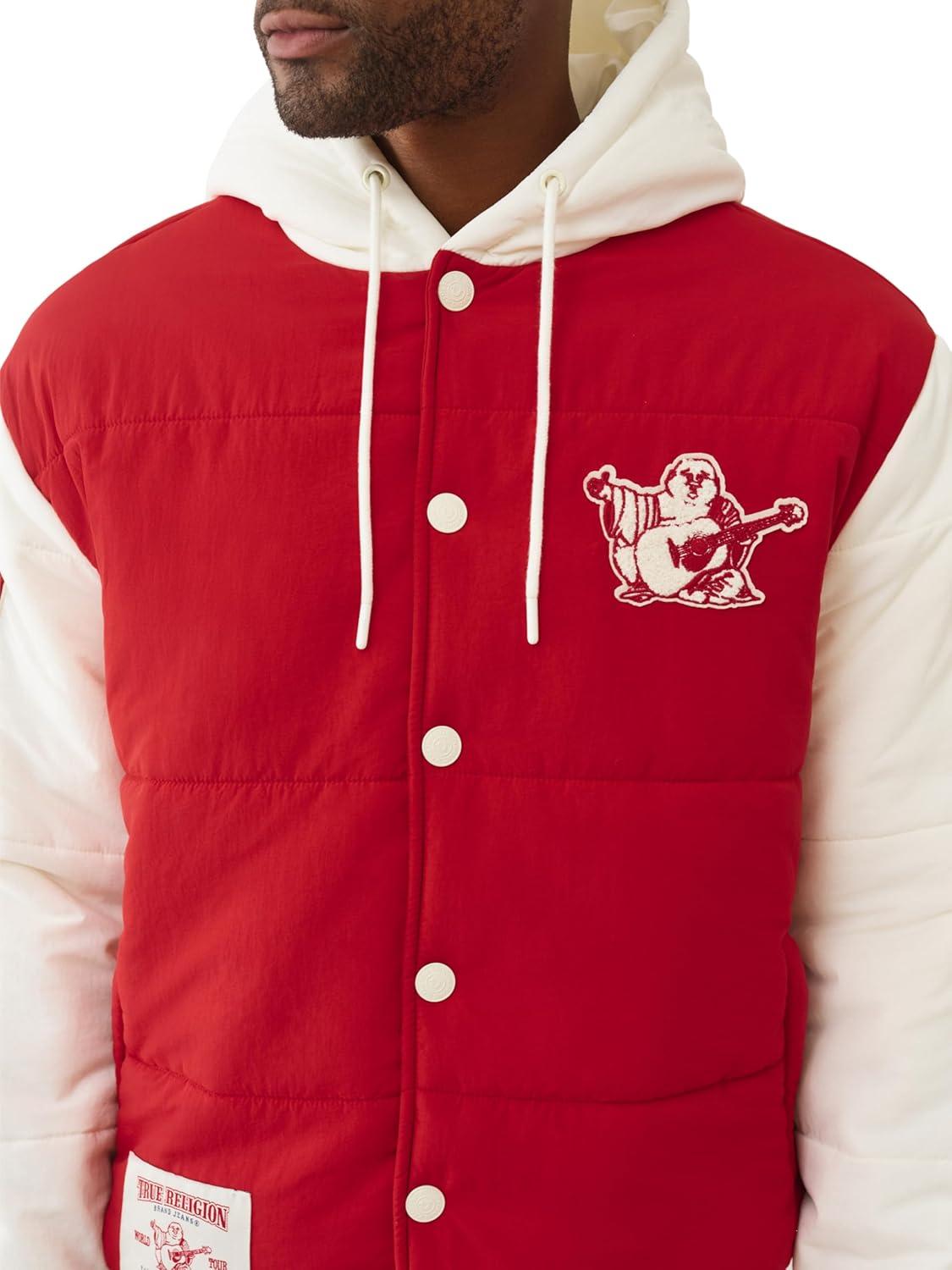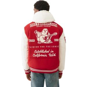 True Religion Boys Varsity Jacket – Stylish Button Front Jacket with Faux Leather Sleeves(Red-black)