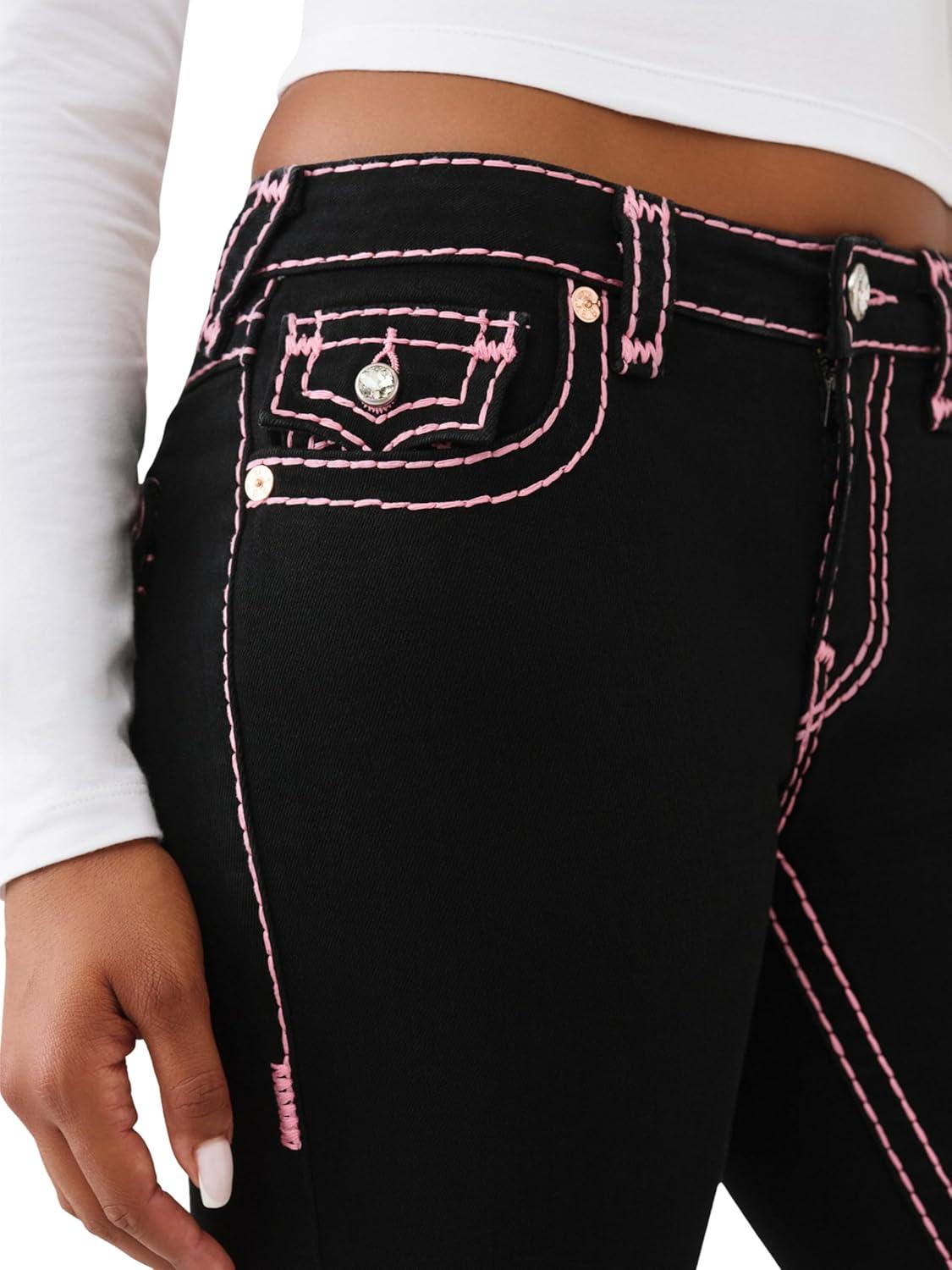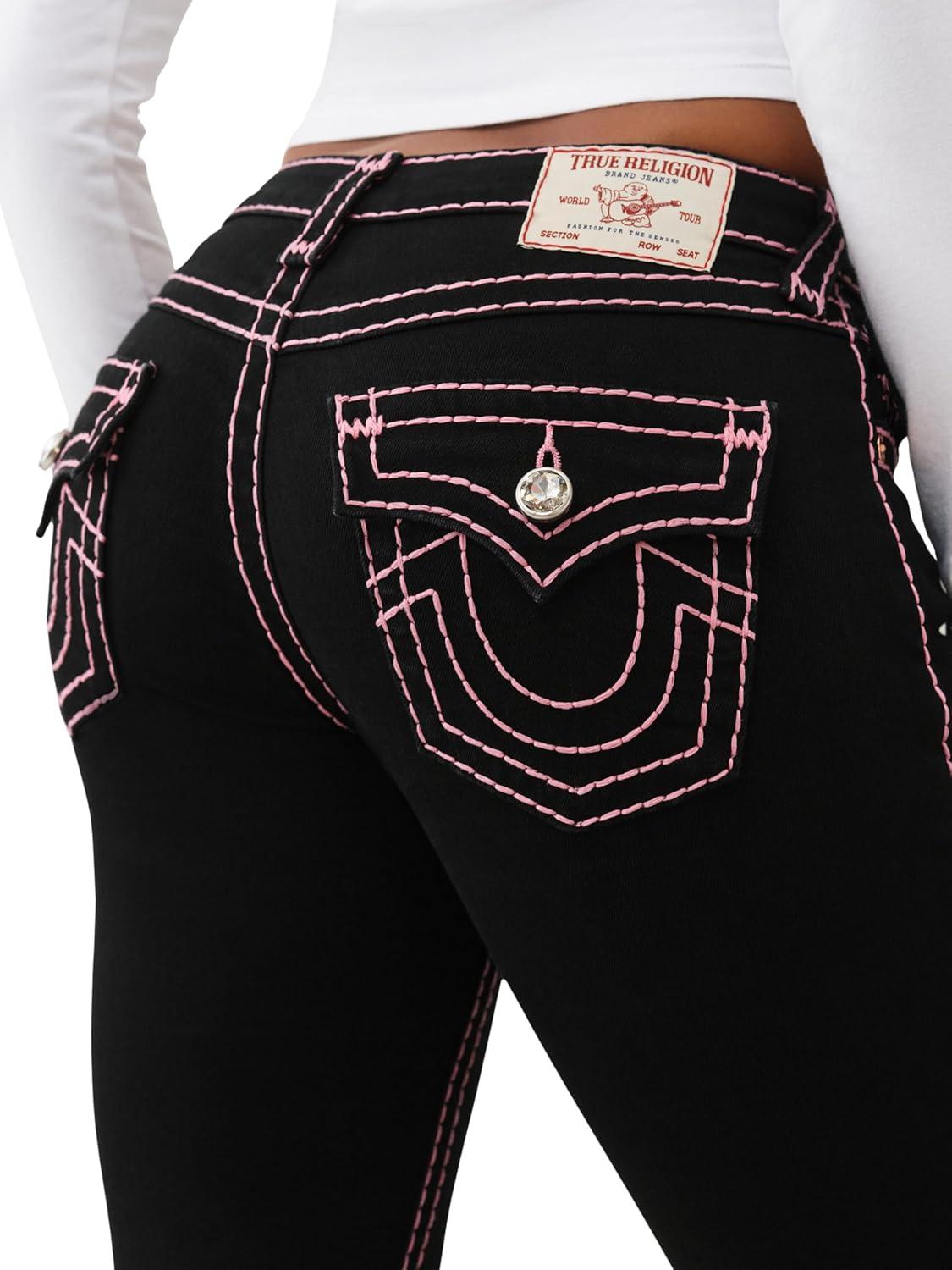 True Religion Womens Super T Billie Straight Flap Fit Valmonte MID Rise Jeans(Valmonte)