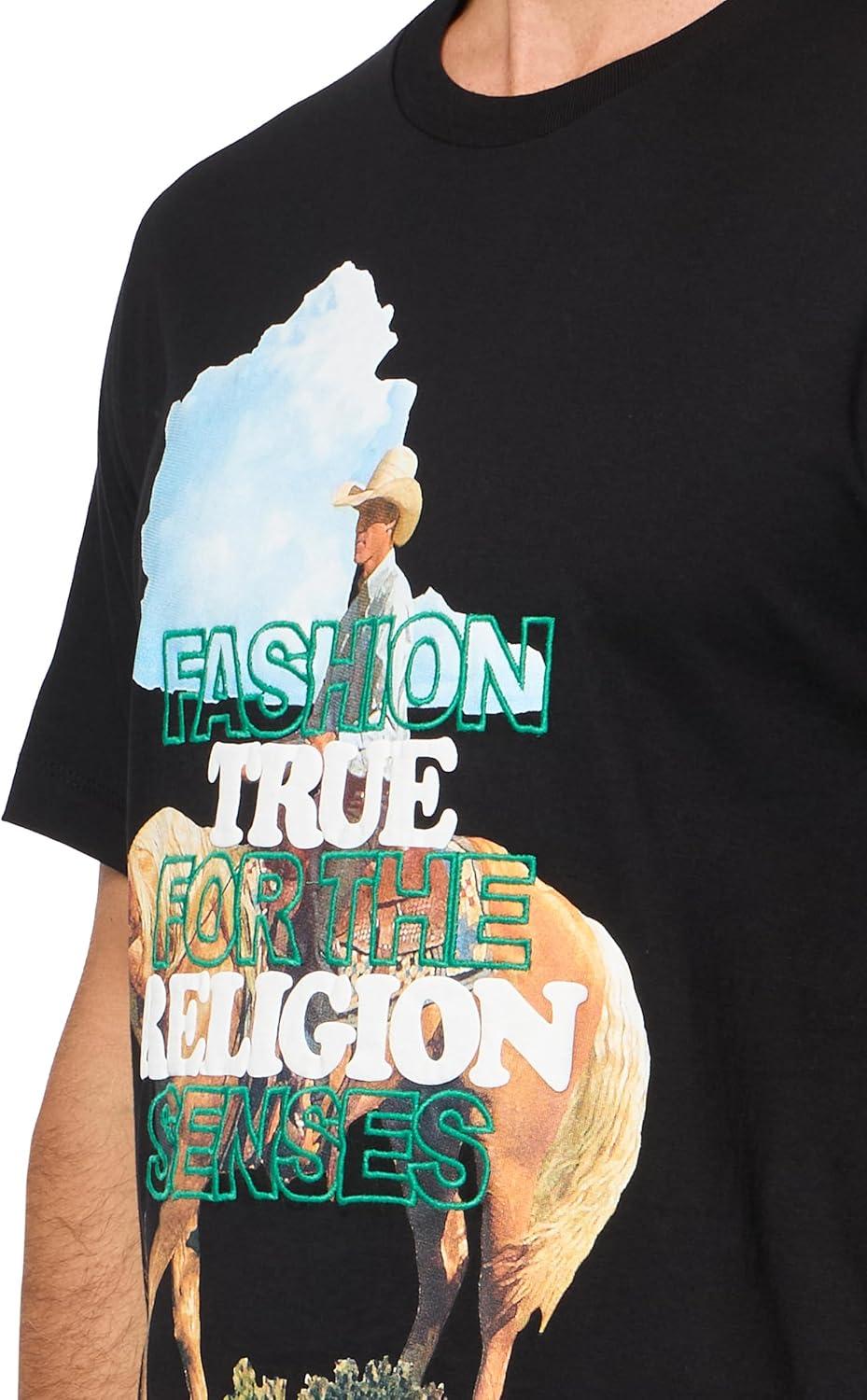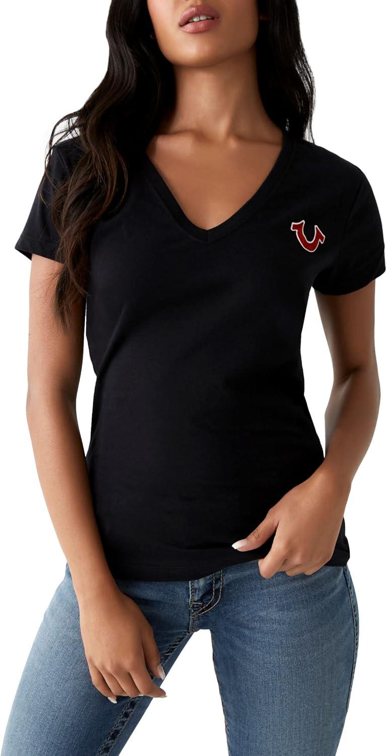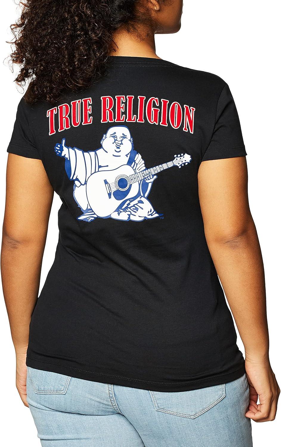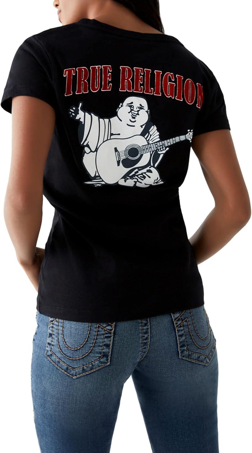 True Religion Women’s V-Neck Buddha Logo Tee(Black)
