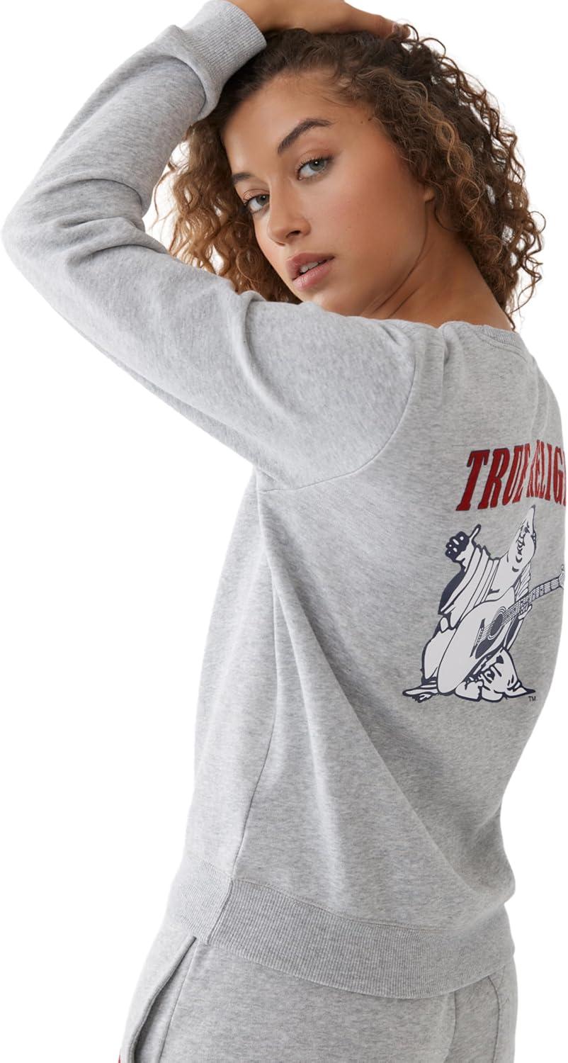 True Religion womens Heritage Buddha Pullover(Heather Grey)